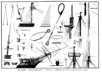 Описание: Содержание книги под заглавием "Изъяснение принадлежностей к вооружению корабля" состоит в том, что все вооружение корабля показано в настоящем его виде; вещи, принадлежащие к оному, описаны так, что каждаго возраста человеку, умеющему читать, могут быть вразумительны. Названия всех предметов означены на Английском и Французском языках, а смысл их изъяснен на Русском. Цель составления сей книги есть та, чтобы она могла быть употребляема с пользою во всех мореходных заведениях для образования юношества, приготовляемаго к морской службе.
