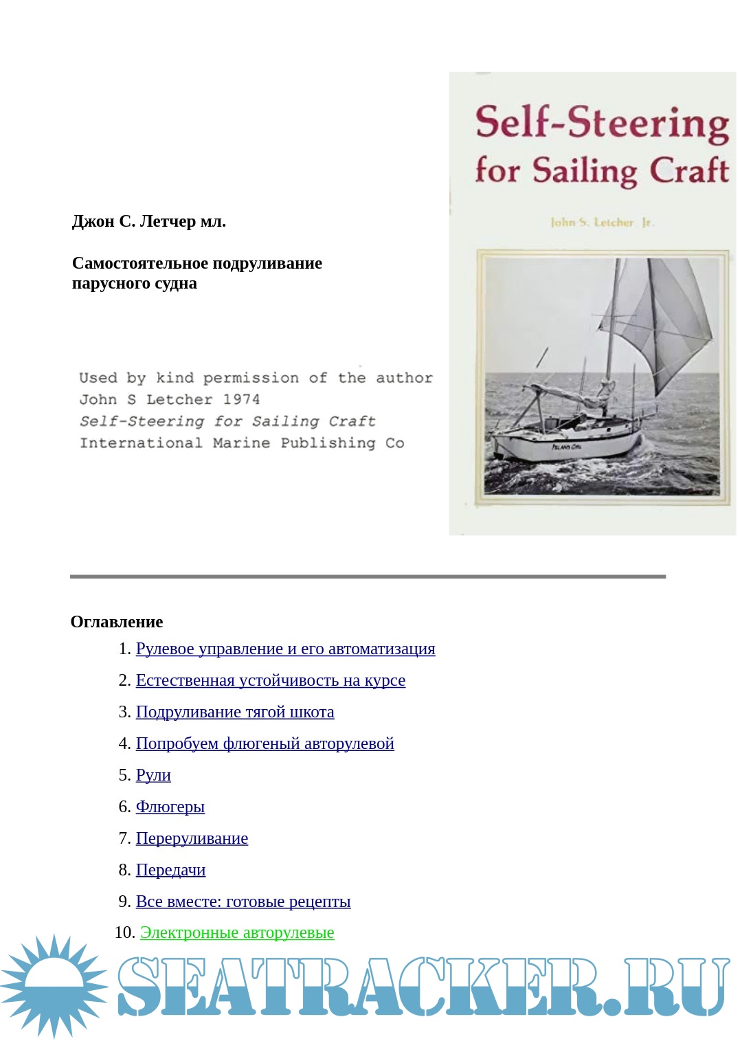 Летчер Дж. Самостоятельное подруливание парусного судна, 1974