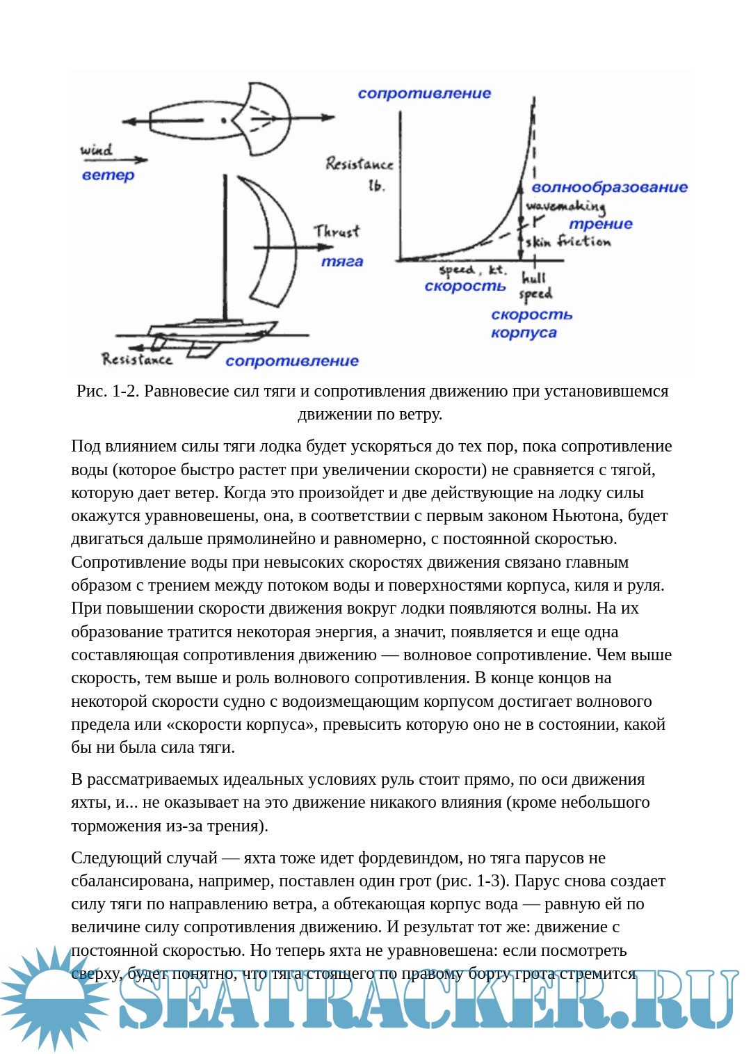 Описание: Главы 1-3 можно рекомендовать как отличный материал для обучения теории плавания под парусами: анализ действующих на яхту сил, центровка, основы аэродинамики –- все это можно использовать как при самостоятельном изучении, так и при обучении в парусных школах. Особый интерес, по-моему, представляет глава 3, в которой рассматривается подруливание с использованием тяги шкотов. Как говорится, это надо знать и уметь, причем и парусному туристу, и яхтсмену любого уровня.