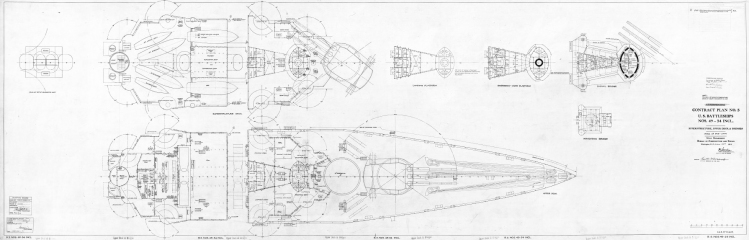 7 листов архивных чертежей линкора США BB-49 South Dakota 1919 годСкриншоты