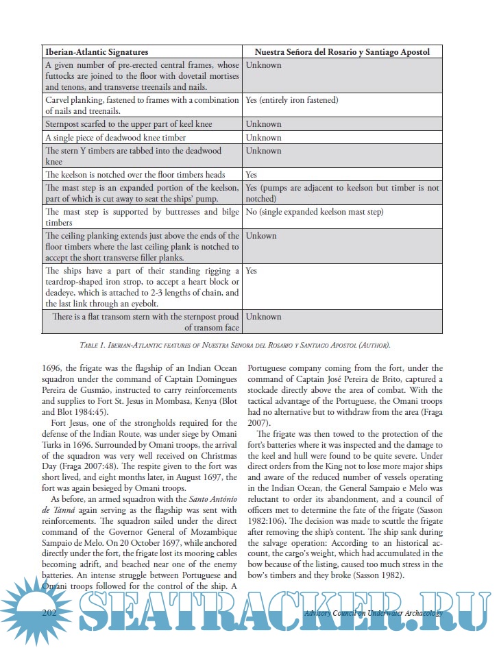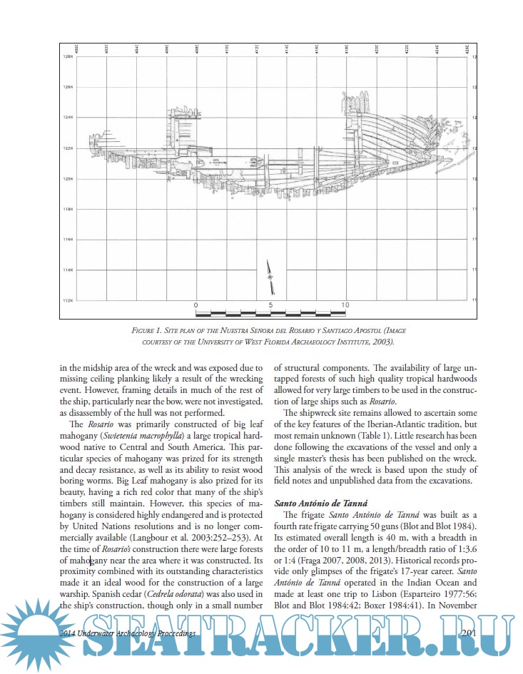 Description: he wrecks of the Rosario and the Santo Antonio are the remains of two late 17th-century Iberian warships. Both ships, constructed in colonial shipyards, were built to defend the colonial interests of Spain and Portugal. he ships are of nearly identical size, carried similar armaments, and are constructed of tropical hardwoods in the Iberian-Atlantic tradition. hese vessels provide invaluable insights not only into colonial shipbuilding but also into the construction of Iberian frigates in the late 17th century. his article, based upon a construction comparison, will present the similarities and diferences of the shipbuilding traditions that produced these vessels.