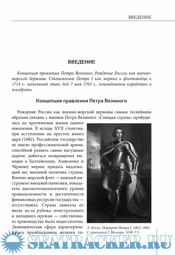 Концепция правления Петра Великого (5). Рождение России как военно-морской державы (15). Становление Петра I как моряка и флотоводца к 1714 г.: начальный этап, бой 7 мая 1703 г., командование кораблями и эскадрами (27).