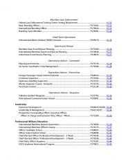 using limited resources. The USCG’S main mission areas are maritime safety, maritime mobility, maritime security, national defense, and protection of natural resources. These mission areas encompass operations in aids to navigation, national defense and international engagement, pollution prevention and environmental response, ice conditions, maritime law enforcement, marine inspection, marine licensing, marine science activities, port safety and security, search and rescue, and waterways management. These