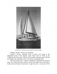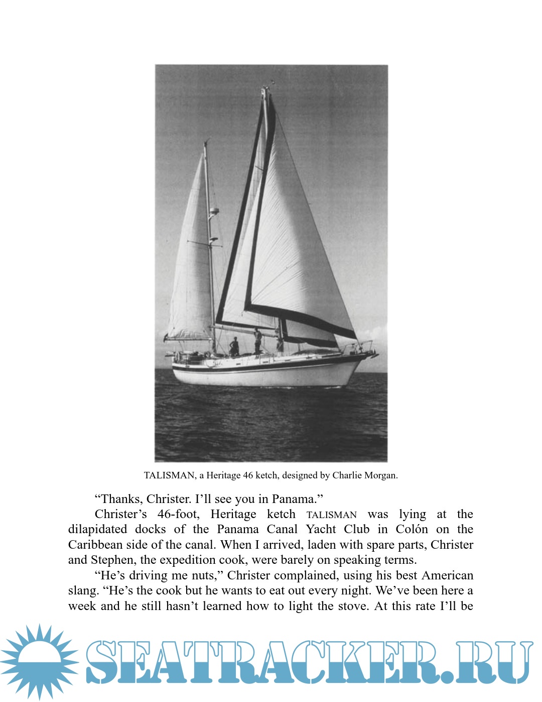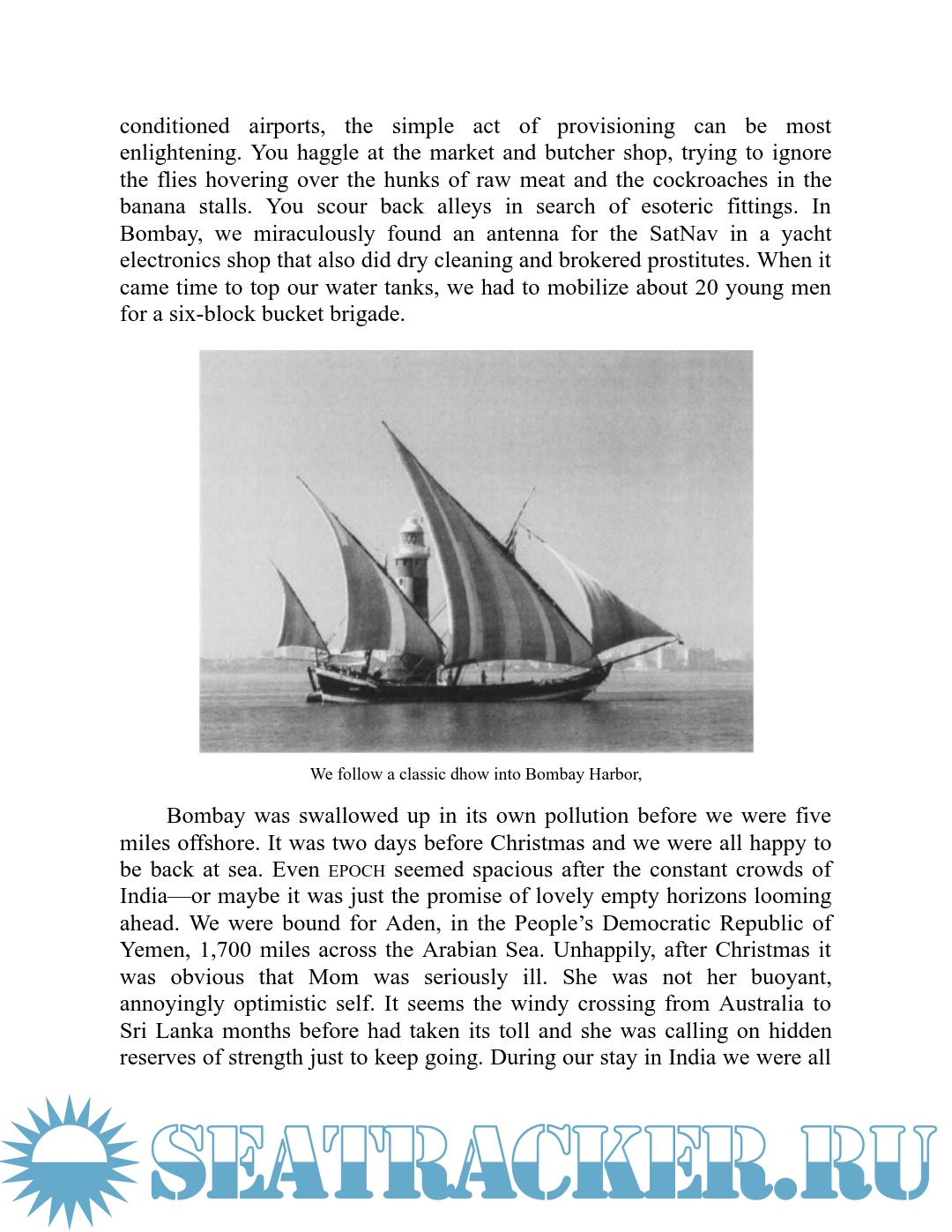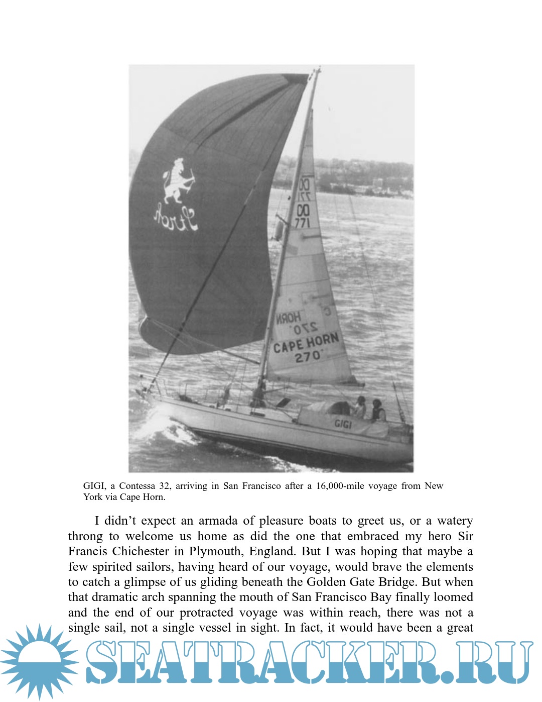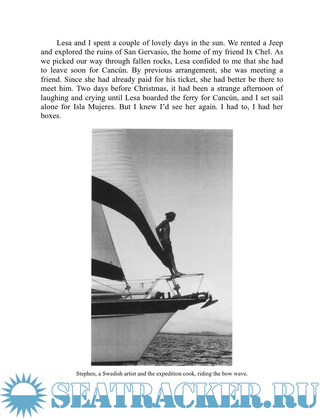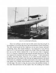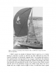 He crosses the Western Caribbean with a crew of eccentric Swedes researching ancient Mayan mariners, lands in Aden at the outbreak of civil war, and endures a North Atlantic crossing during which he disocvers the existence of Force 13 winds. Approaching Japan at the end of a particularly trying delivery, he finds himself sailing in "a high impact debris zone," but his resolve is unshaken. "If a piece of rocketship jetsam fell out of the sky and sank [me] after encounters with Hurricane Floyd, General Noriega,a tsunami, an erupting volcano, and Typhoon Roy, then it was meant to be."