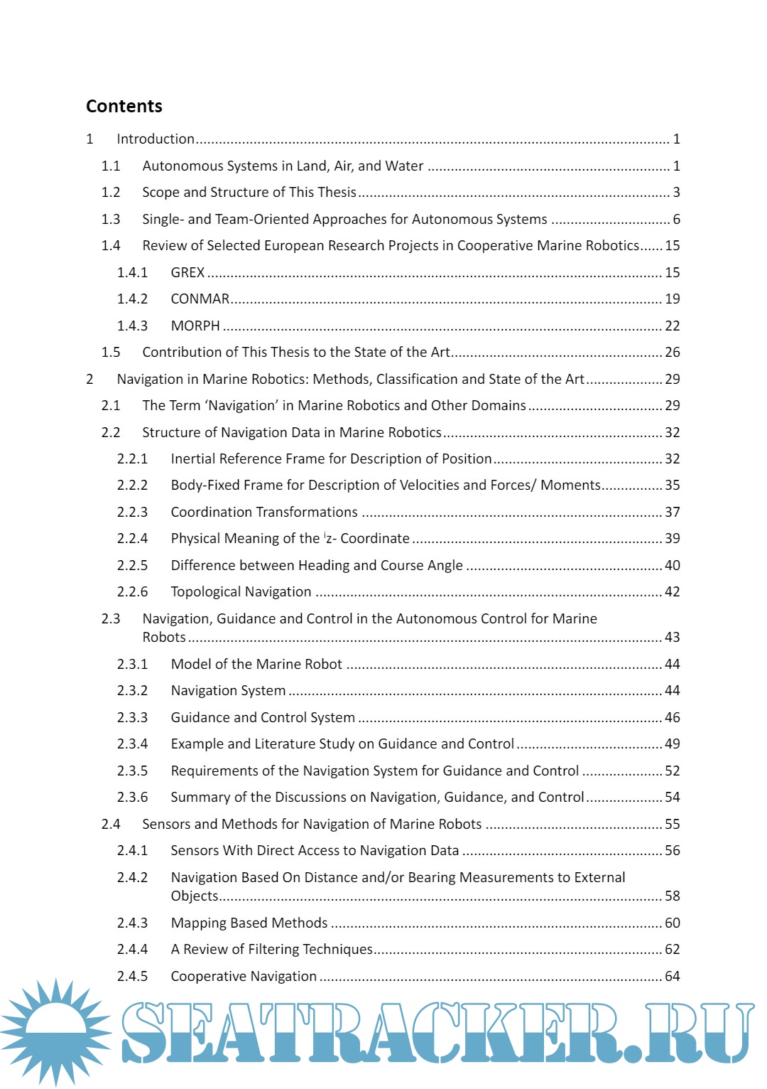 Year: 2020 Language: English Author: Thomas Glotzbach Genre: Research papers Publisher: Springer Vieweg ISBN: 978-3-658-30108-8 Format: PDF Quality: eBook Pages count: 392 Description: Thomas Glotzbach spotlights that navigation within marine robotics can benefit from cooperative teams in a way that justifies the increased effort to operate several vehicles at once. He features discussions of different scenarios, modeling of systems, and estimation algorithms for comparable situations. The chapter on the used methodologies may allow a reader with only basic knowledge in control theory to obtain deeper insight in advanced concepts such as observability and state estimation, even without any background in marine robotics. Contents • Navigation in Marine Robotics: Methods, Classification, and State of the Art • Problem Formulation and Definitions • Mathematical Tools from Control and Systems Engineering • Methods for Cooperative Navigation • Optimal Sensor Placement in Marine Robotics • Combination of Cooperative Navigation and Optimal Sensor Placement Target Groups • Researchers and students in the fields of automation, control systems, electrical and computational engineering • Practitioners in marine robotics, mobile systems The Author Dr. Thomas Glotzbach obtained experience in maritime robotics as researcher at Technische Universität Ilmenau, Germany (doctoral and habilitation degree) and at Instituto Superior Técnico, Lisbon, Portugal. Since September 2019, he has been Professor of Control Engineering and Robotics at Technische Hochschule Mittelhessen – University of Applied Sciences, Germany.