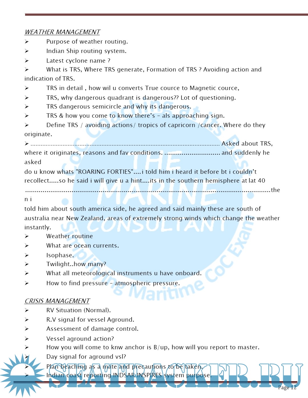 Orals Question Bank (February 2023) for Chief Mate F.G. Mercantile Marine Department (MMD), India…