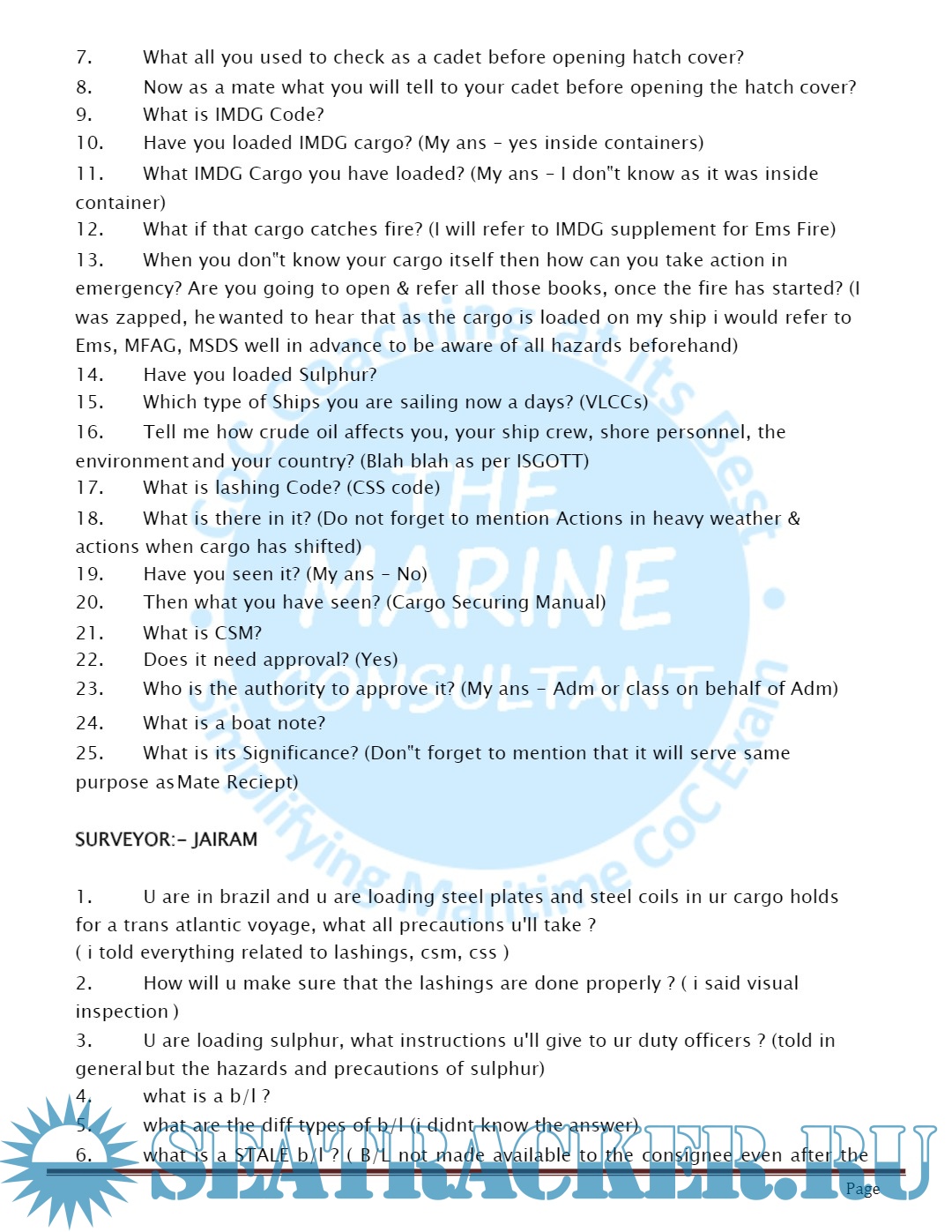 Description: Orals Question Bank for Chief Mate F.G. Mercantile Marine Department (MMD), India Examinations.