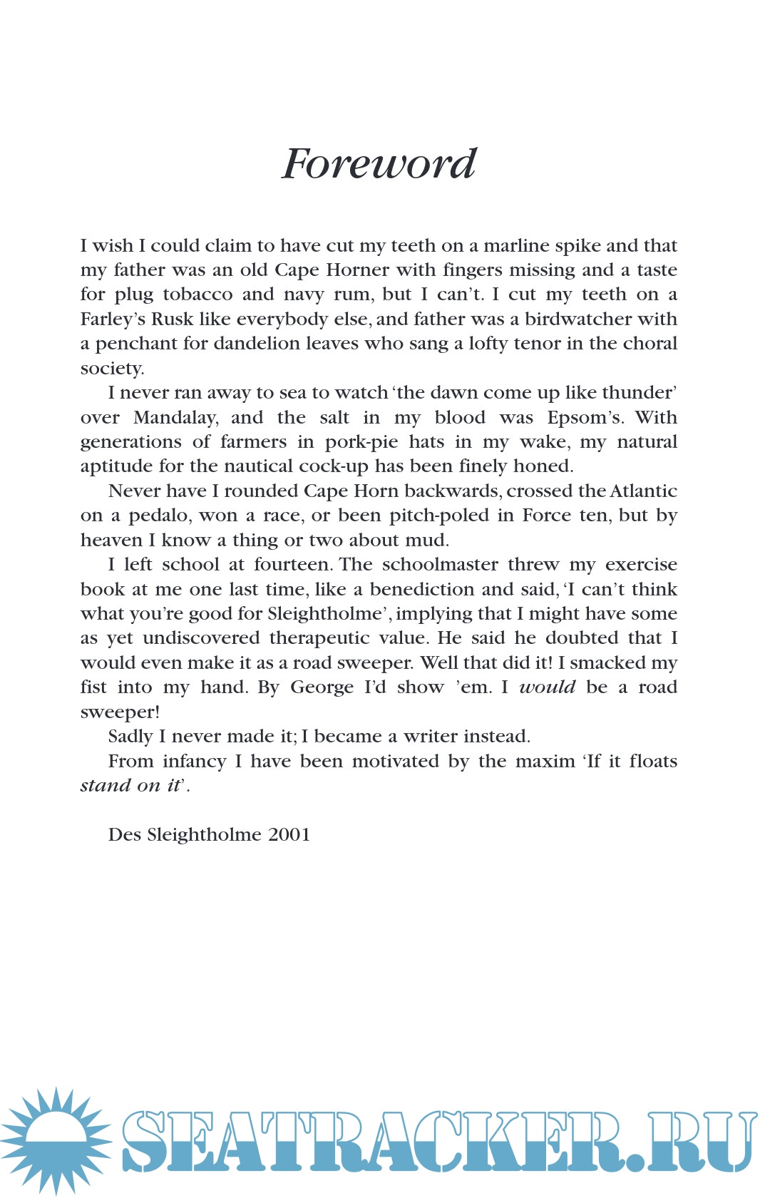 Description: Des Sleightholme, former Editor of Yachting Monthly" for many years, is well known for his irreverent outlook on the Establishment and for his unfailing eye for the funny side of things; here he takes on a hilarious anecdotal romp through his sailing life.