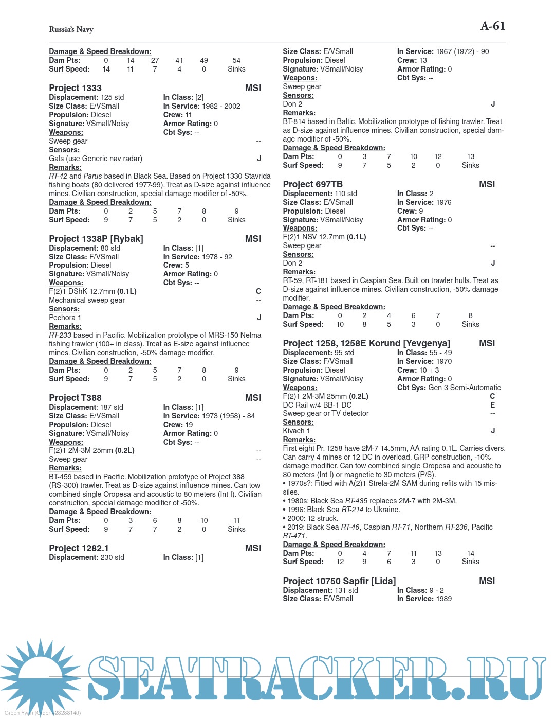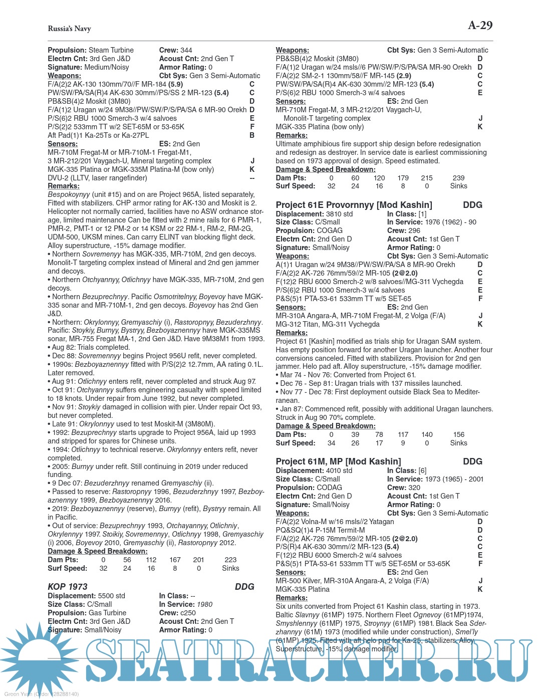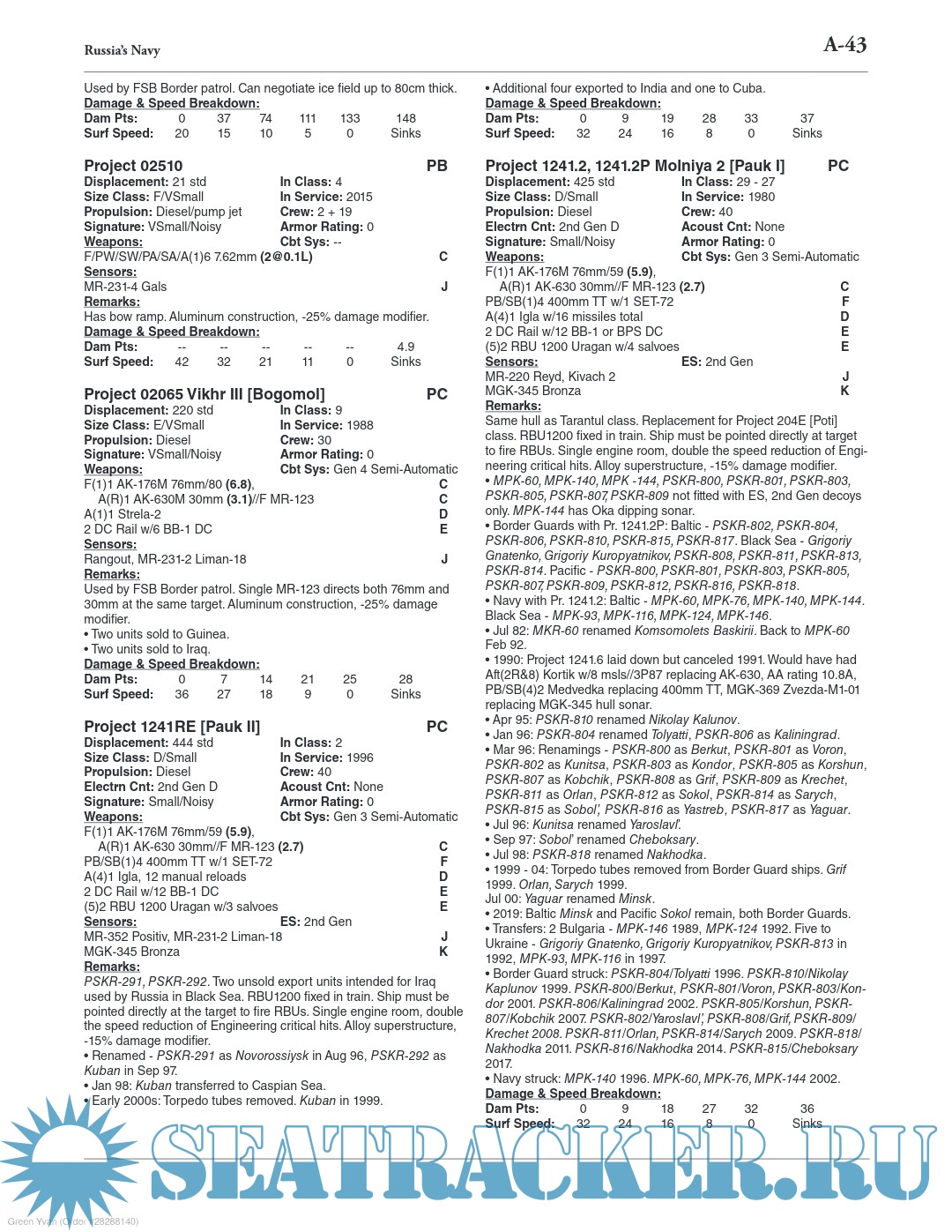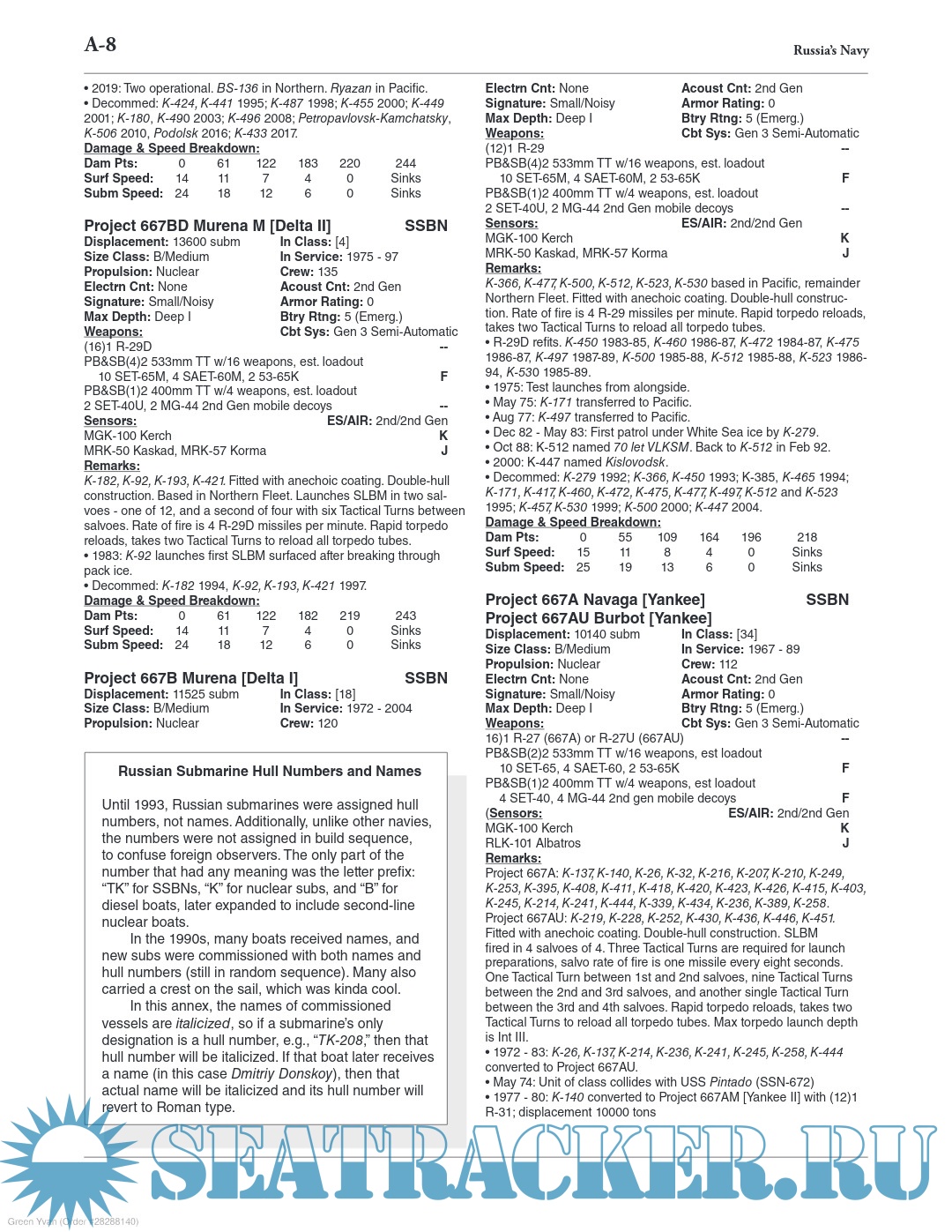 Description: Russia's Navy is a comprehensive listing of platforms, weapons and sensors for Soviet & Russian naval units from 1955-2020. All the data is based on real-world information, and is the most accurate unclassified source in existence.