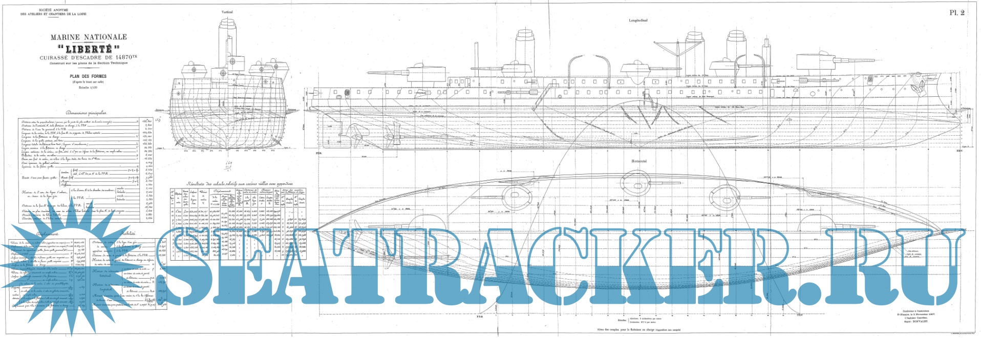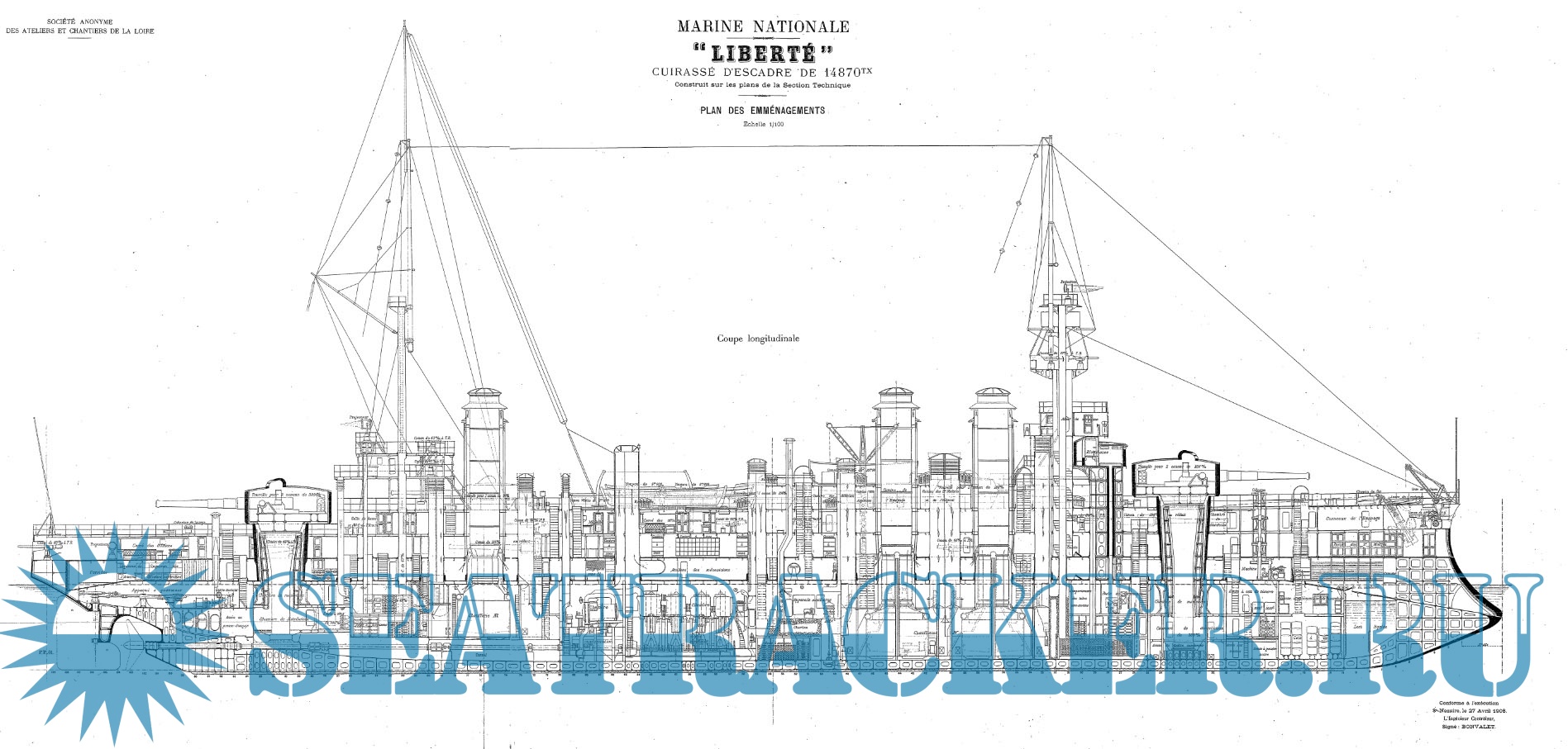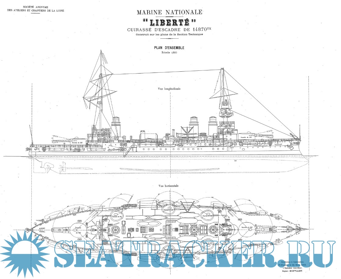 Архивные чертежи броненосца LIBERTE (Франция) 1905 год