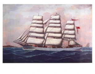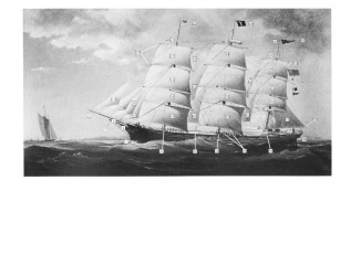 Description: Colour reproductions of 38 portraits of New Brunswick vessels: David (brig), Tantivy (brig), Albion, Elizabeth (barque), Ianthe (barque), Wm. Carson (barque), Oregon, Boadicea, Dundonald, Reciprocity, Eleanor, Victress (barque), Morning Light (brig), Lord Palmerston, Annie (barque), Tantamar [sic] (brig), Colonist (barque), M. Wood (barque), Maggie Chapman (barque), Robert Godfrey (barque), Morocco (barque), Jardine Brothers (barque), St. Patrick (barque), Royal Harrie (barquentine), Agnes Sutherland, Alexander Yeats, Tikoma (barque), Antoinette (barque), Karnak (barque), Still Water (barque), Curlew (brigantine), Andora, Robert S. Besnard (barque), Troop, Centurion, Vamosse (3-masted schooner), Howard D. Troop (4-masted barque), Marathon, and S.S. Pydna.