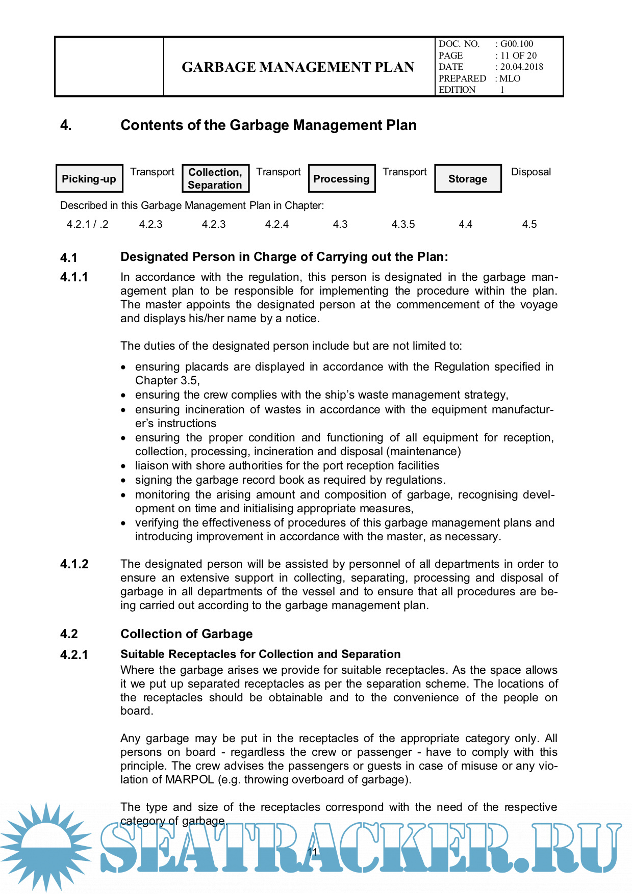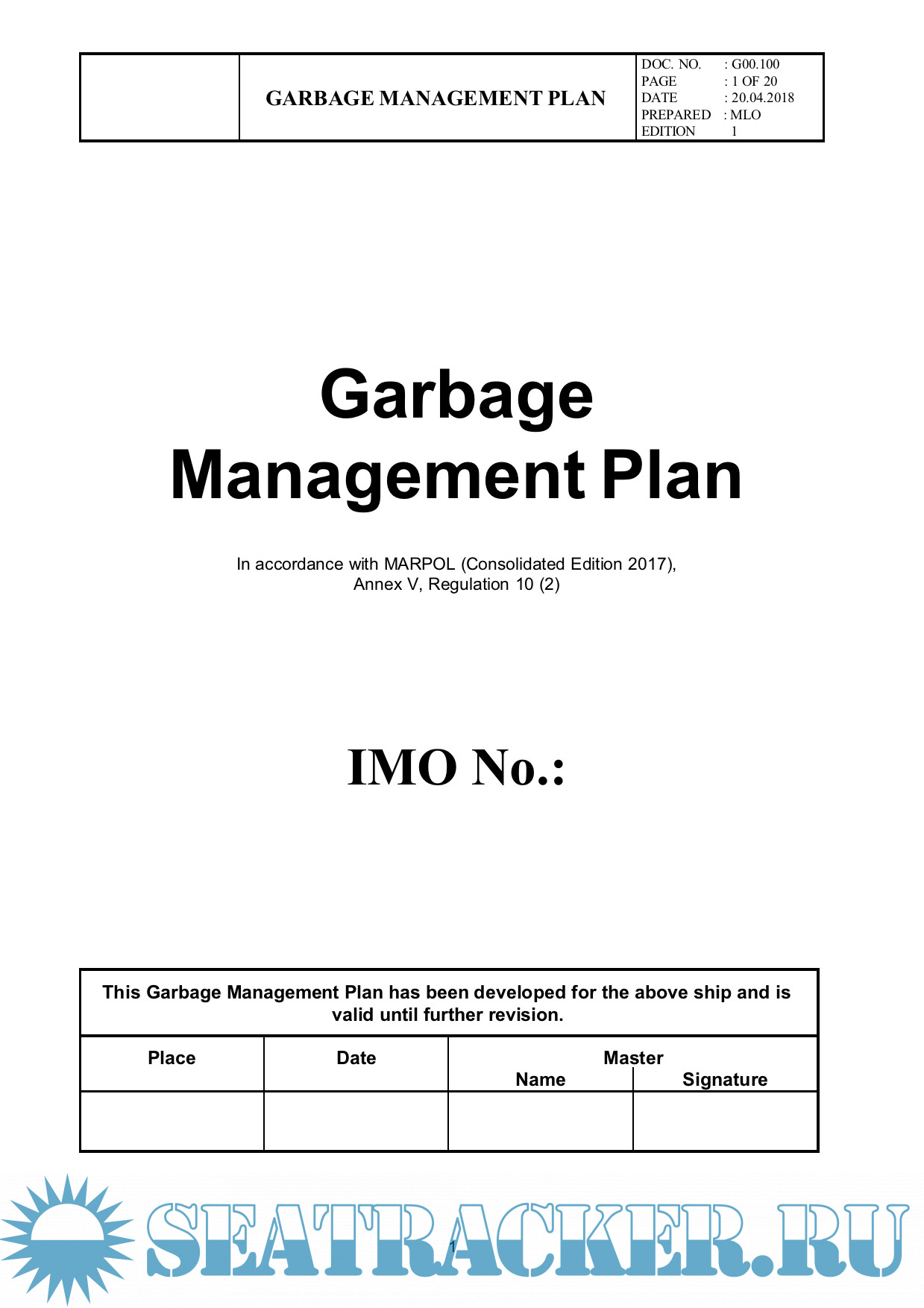 Description: New Garbage Management Plan In accordance with MARPOL (Consolidated Edition 2017), Annex V, Regulation 10 (2). In force from 01.03.2018