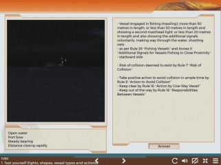This module is to examine mariners for themselves about Colreg's Lights rules and advisory which can face while navigating circumstances.
