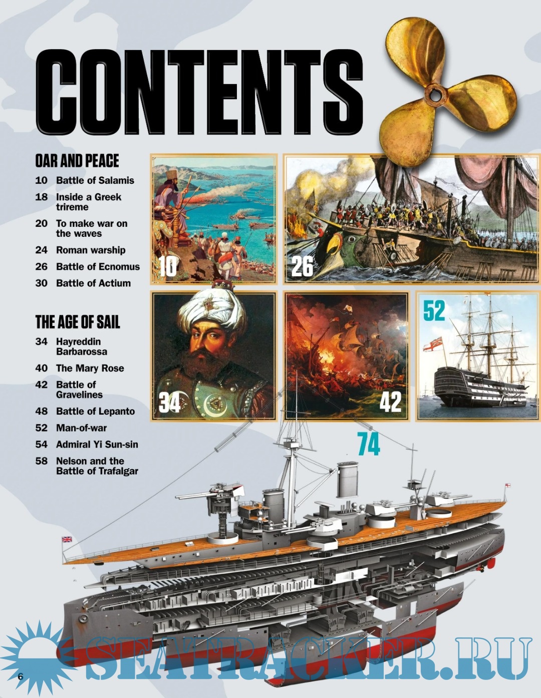 Description: Grab the taffrail, sailor! You’re about to immerse yourself in a world of brutal sea battles, cutting- edge warships and brilliant commanders. Prepare to board a Greek trireme and clash with a Persian invasion fleet hellbent on extinguishing democracy and enslaving the West. If victory is yours further clashes await you from Lepanto and Trafalgar to Midway and the sinking of Yamato, Imperial Japan’s most formidable battleship. On your journeys across the seas you will meet a 16th- century admiral still hailed as a hero in Korea and stand on deck beside the ambitious commander who thwarted Napoleon. Then you will board the ships of the future and learn how naval warfare is changing thanks to the latest technology.