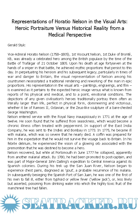 Description: The Trafalgar Chronicle is a prime source of information as well as the publication of choice for new research about the Georgian Navy, sometimes also loosely referred to as ‘Nelson’s Navy’, though its scope reaches out to include all the sailing navies of the period. The central theme of the 2020 issue is ‘portrayals of the Georgian Navy though art, literature, and film’. The feature article, by Gerald Stulc, MD, analyzes film depictions and portraits of Horatio Nelson, throughout his service and after his death, comparing these images to the clinical realities of Nelson’s injuries in battle.