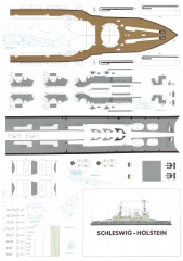 Описание: 8 листов цветных выкроек для изготовления броненосцев типа Schleswig-Holstein (Германия)