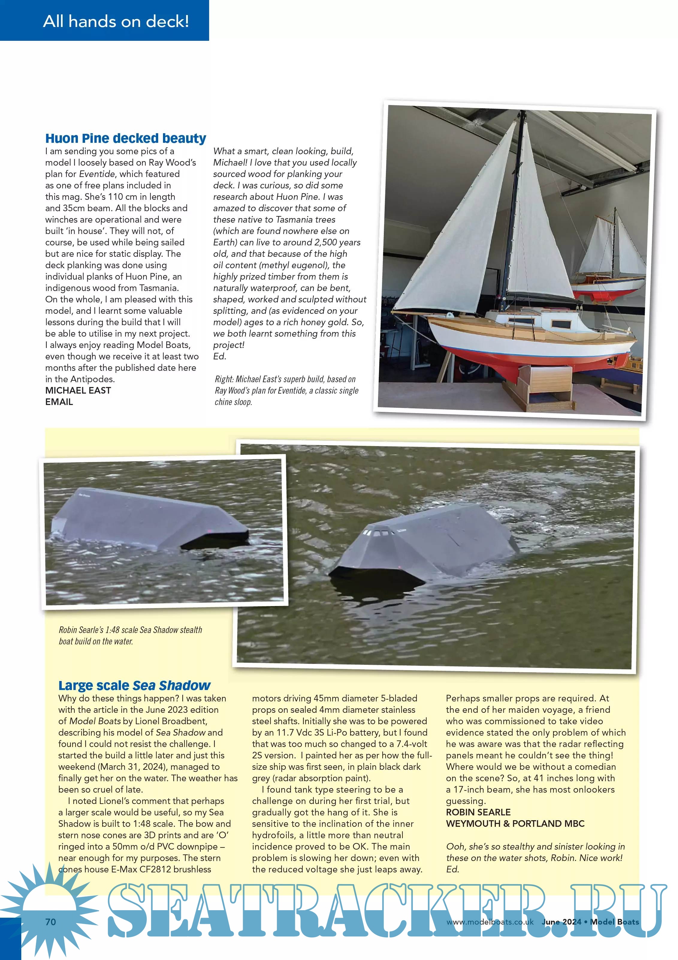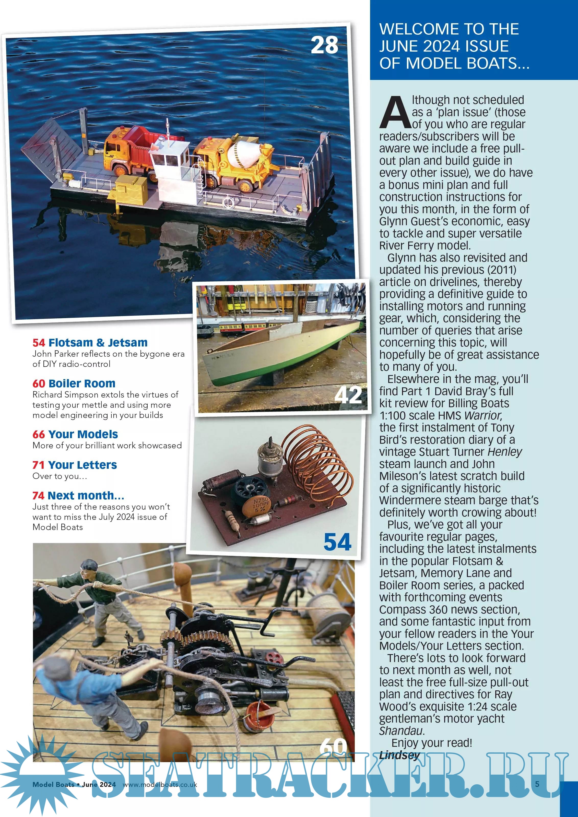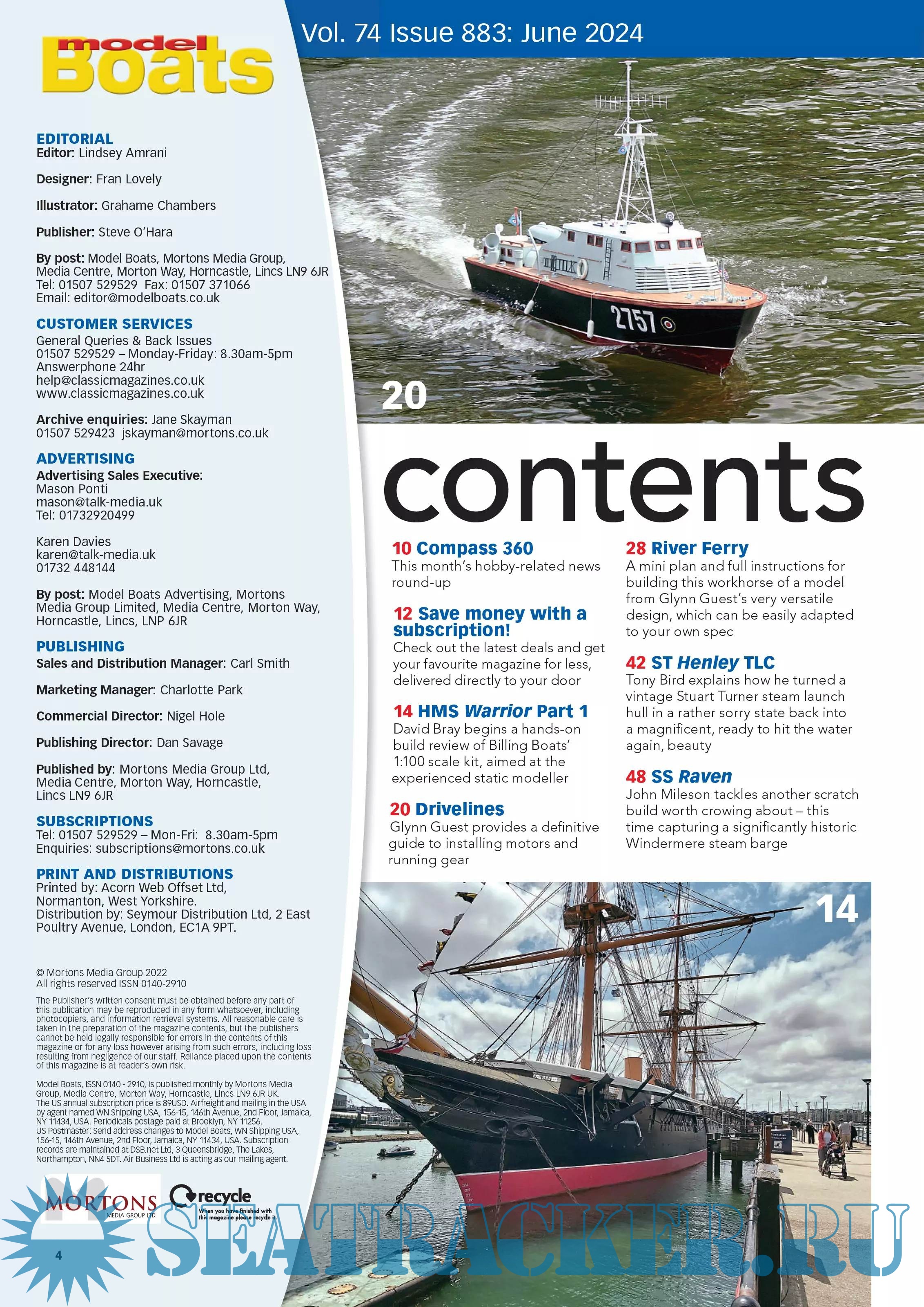 Year: 2024 Language: English Author: Lindsey Amrani (Editor) Genre: Periodical (magazine) Publisher: Mortons Media Group Ltd Edition: vol.74 No.883 Format: PDF Quality: eBook Pages count: 76 Description: Model Boats magazine is a practical and informative read for those with a love for the hobby. It covers the latest news and views from the various clubs and associations around the country, useful hints, tips and step by step guides for those interested in the art of constructing a model boat as well as tests and recommendations of new boats and tools. Floating along behind these are great special features examining in depth different models from narrowboat to destroyer!