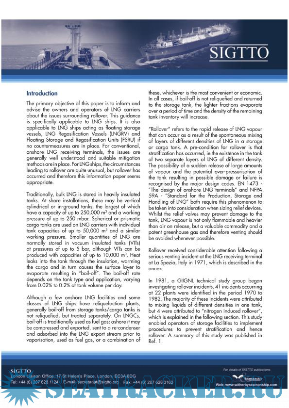 Guidance for the Prevention of Roll over on LNG Ships - SIGTTO [2012, PDF]