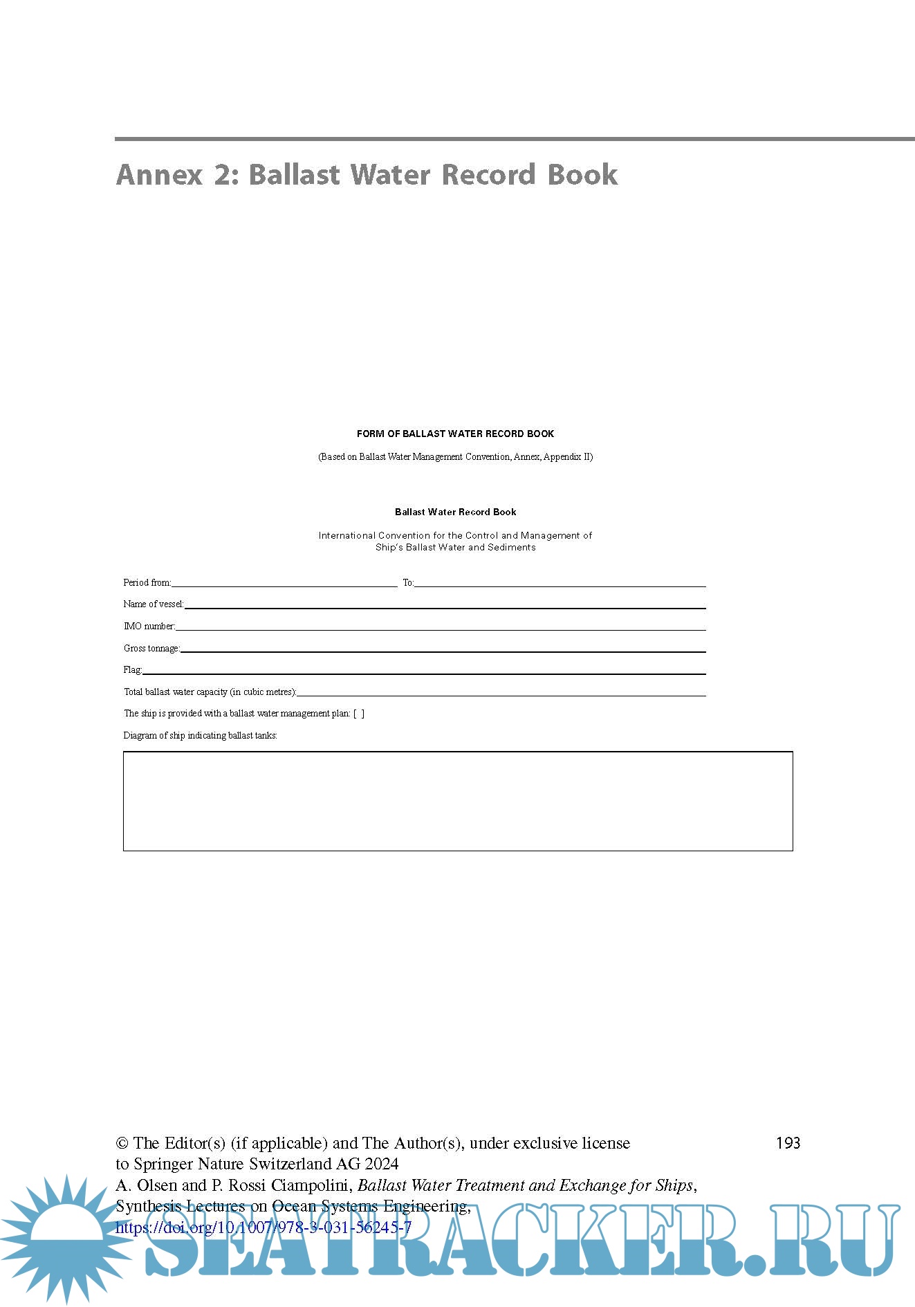 This book includes updates for the clarification of Survey requirements and adds the definition of biological commissioning, testing as well as requirements for Class approved Service Providers to conduct biological commissioning testing. Moreover, this book includes updates due to the adoption of the requirements from IACS UR M74, Rev. 2 and UR F45 and is applicable for existing ships, where an application for approval for the plans of BWMS is made on or after 1 July 2022; or for new ships contracted for construction on or after 1 July 2022.