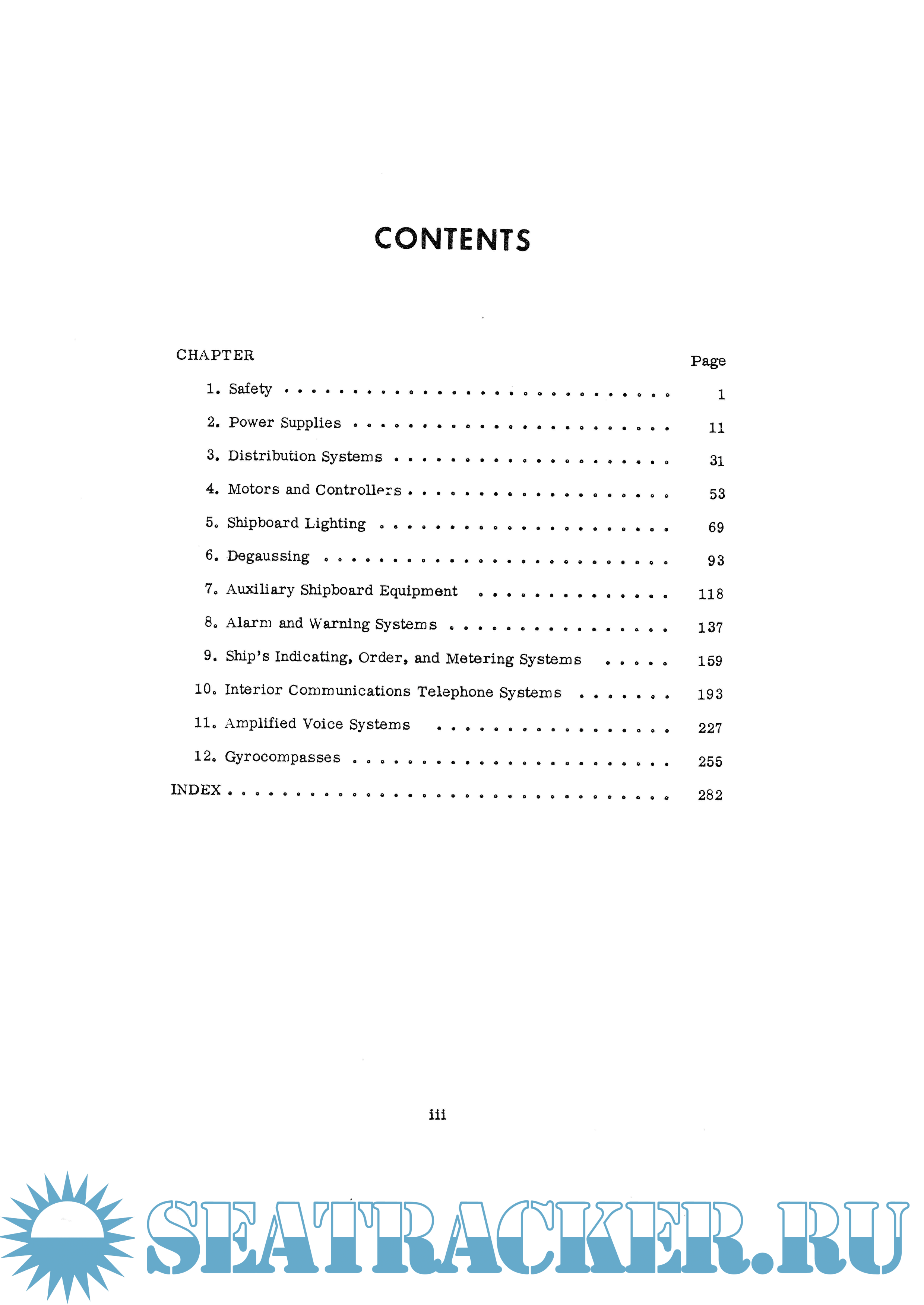Description: This text provides hints on managing the maintenance of generating equipment, distribution systems, motors, controllers lighting systems, egausslng systems, auxiliary equipment, alarm and warning systems, reckoning equipment, telephone systems, amplified voice systems and gyrocompasses. Safety precautions required n maintenance and operation of the above equipment and systems are stressed.
