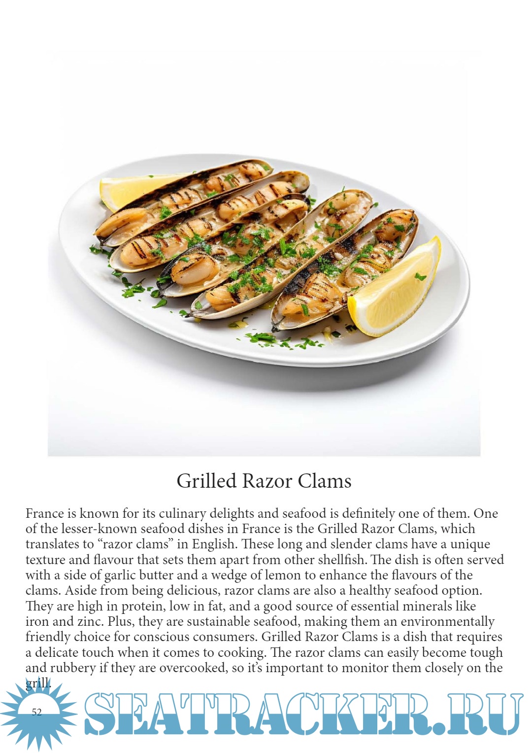 Year: 2024 Language: English Author: Magic Media ApS Genre: Periodical (magazine) Format: PDF Quality: eBook Pages count: 58 Description: Introducing “SEAFOOD France: A Culinary Journey Through France’s Coastal Treasures”. This seafood cookbook is a celebration of the rich, diverse, andtantalizing world of French maritime cuisine. With its stunning landscapes, historic fishing villages, and aculinary heritage that spans centuries, France offers an abundance of exquisite seafood dishes that delight the senses. In this cookbook, you will discover an enticing collection of recipes that showcase the finest seafood treasures from the Mediterranean to the Atlantic shores, and beyond. From the charming simplicity of Provencal bouillabaisse to the luxurious indulgence of Brittany’s lobster bisque, “ SEAFOOD France “ takes you on a gastronomic adventure that highlights the unique flavors, traditions, and culinary techniques of each coastal region. Whether you’re an experienced chef or a passionate home cook, this cookbook provides a treasure trove of recipes, tips, and insights to help you recreate the magic of France’s seafood cuisine in your own kitchen. Immerse yourself in the world of briny oysters, succulent scallops, delicate sea bass, and so much more, and let the flavors of the sea transport you to the heart of French coastal culture. All recipes are for 4 persons! Additional info: Food Recipes: Julia Barbier Illustrated by: Induwara Jayanga