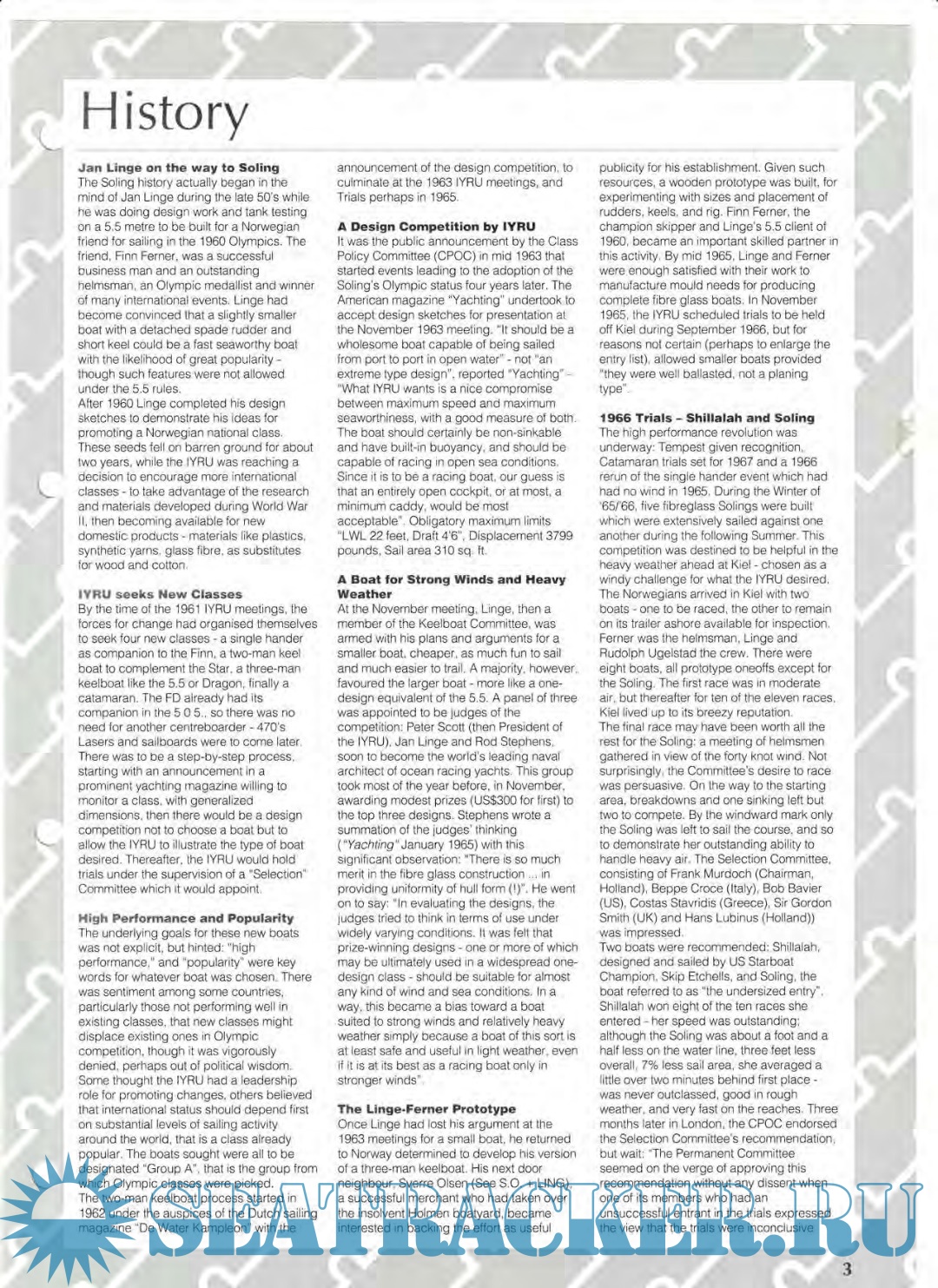 At the direction of the ISA Committee, it is a different publication from its predecessors. though it again carries the material which is needed to sustain the organization, the fabric in which the Class makes decisions, and the record of its rules which provide a guide for Soling competition throughout the world.