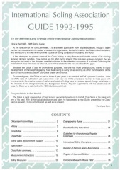 Year: 1992 Language: English Author: International Soling Association Genre: Manual Publisher: International Soling Association Format: PDF Quality: eBook Pages count: 44 Description: To the Members and Friends of the International Soling Association: Here is the 1992 - 1995 Soling Guide. At the direction of the ISA Committee, it is a different publication from its predecessors. though it again carries the material which is needed to sustain the organization, the fabric in which the Class makes decisions, and the record of its rules which provide a guide for Soling competition throughout the world. It has attempted to present some of the Class' history in story form as well as the names of its winning skippers of many regattas. Crew names are too often lost to attempt their inclusion on every occasion, but we recognize that most of the skippers owe their victories to the other two occupants of our boat. Collecting the material took more time than we allowed, so it will have to be for the next Guide to fill the gaps. Because the Guide is also for promotional purposes. this one has more great pictures, thanks to rapid developments in marine photography. Keel boat racing is every bit as exciting as other manifestations of the sport of racing sailboats, as our four-colour plates demonstrate. To some degrees, this Guide as well as those of past years is an arrested "still" of a process in motion - rules as of the date of publication, yet rules which even now are in the process of revision to keep pace with improvements, the creative results of sailors and builders finding ways to increase speed, though not always In the interests of one-design similarity; but that goes on forever. Regular supplements with the latest rules will keep the Class up to date before the 1996 Guide is published.