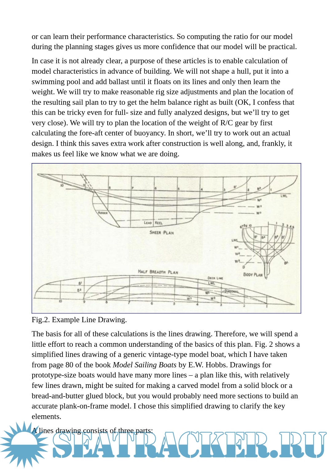 Year: 2019 Language: English Author: Henderson J. Genre: Manual Format: PDF/docx Quality: eBook Pages count: 33 Description: Scale models of full-sized boats should look realistic and sail well. These two goals have more or less equal importance, but they can conflict. So we must address the trade-offs, which imposes some practical limitations. This three-part series of articles will introduce you to the considerations and calculations needed to create a sailing model from full-sized plans.