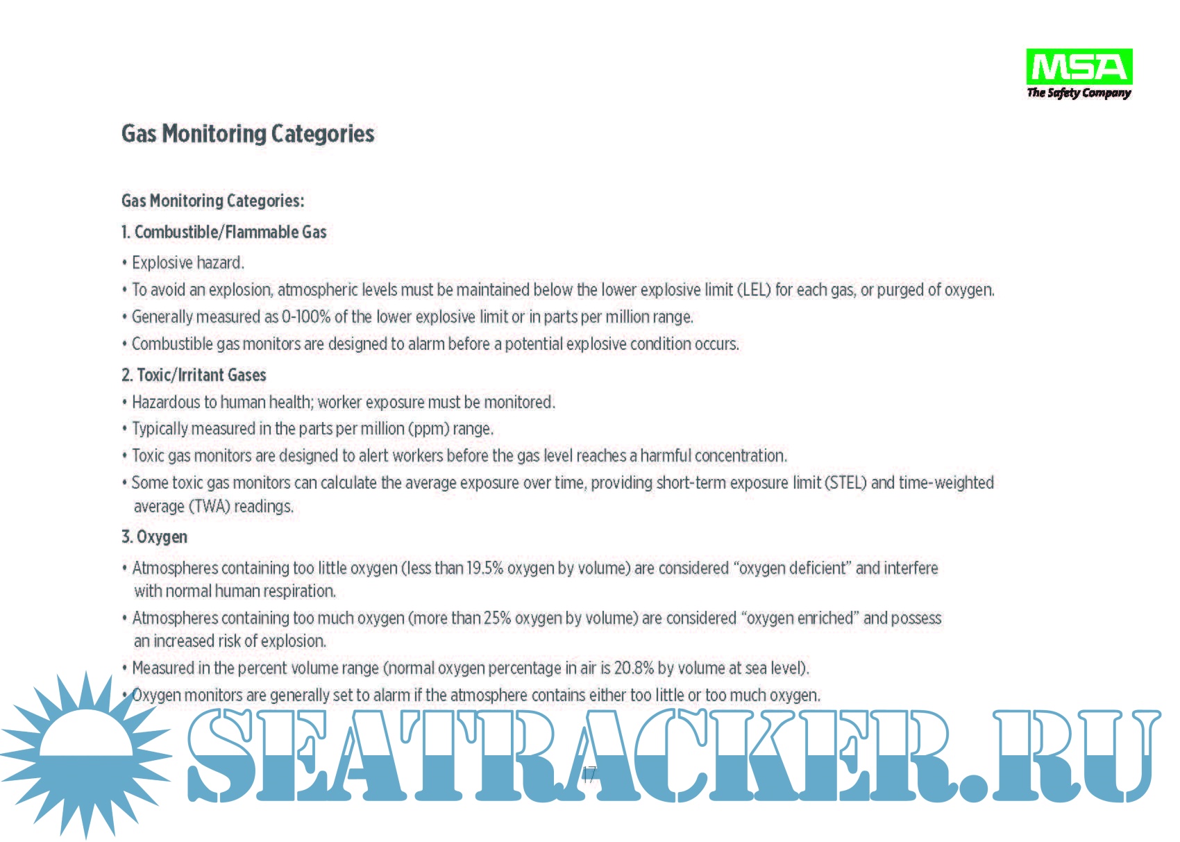 Year: 2022 Language: English Author: Mine Safety Appliances Company Genre: Manual Edition: 9 Format: PDF Quality: eBook Pages count: 156 Description: Gas Detection Handbook: Key Concepts & Reference Material for Gas Monitoring Systems Your handbook for key terms and concepts in gas detection. Access information such as specific gas properties, exposure limits, and other data. Information includes: most widely-used gas detection technologies, overview of flame detection technologies, gas hazards common to specific applications, and more! The Handbook contains: • A glossary of essential gas detection terms and abbreviations. • A summary of key principles in combustible and toxic gas monitoring. • Reference data – including physical properties and exposure limits – for the most commonly monitored gases, in industrial and various other environments. • A comparison of the most widely-used gas detection technologies. • A table indicating the gas hazards common to specific applications within major industries. • A summary of key gas detection instrumentation approvals information, including hazardous locations classification. • MSA’s exclusive Sensor Placement Guide, detailing important factors to take into consideration when determining optimum gas sensor placement.