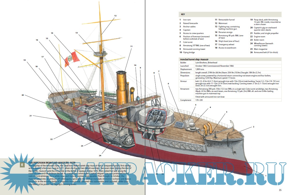 In this book, naval expert Angus Konstam offers readers an essential guide to this little-known naval war, illustrated with detailed profiles of the key ironclads, spectacular original artwork of the battles and a cutaway of Huáscar. He briefly covers the strategies of the warring powers as well as exploring all the key points of the naval campaign and the details of the warships involved, as a handful of ironclads fought for naval supremacy in South America.
