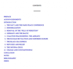 Description: Victory Without Peace concentrates on the U.S. Navy in European and Near Eastern waters during the post-World War I era. As participants in the Versailles peace negotiations, the Navy was charged with executing the naval terms of the Armistice as well as preserving stability and peace. U.S. warships were deploying into the Near East, Baltic, Adriatic, and Northern Europe, while simultaneously withdrawing its demobilized forces from European waters. This signifies the first time the U.S. Navy contributed to peacetime efforts, setting a precedent continues today. Conversely, Congressional appropriations handicapped this deployment by demobilization, general naval policy and postwar personnel, and operating funds reductions. Though reluctant to allocate postwar assets into seemingly unimportant European and Near Eastern waters, the Navy was pressured by the State Department and the American Relief Administration's leader, Herbert Hoover, to deploy necessary forces. Most of these were withdrawn by 1924 and the European Station assumed the traditional policy of showing the flag.