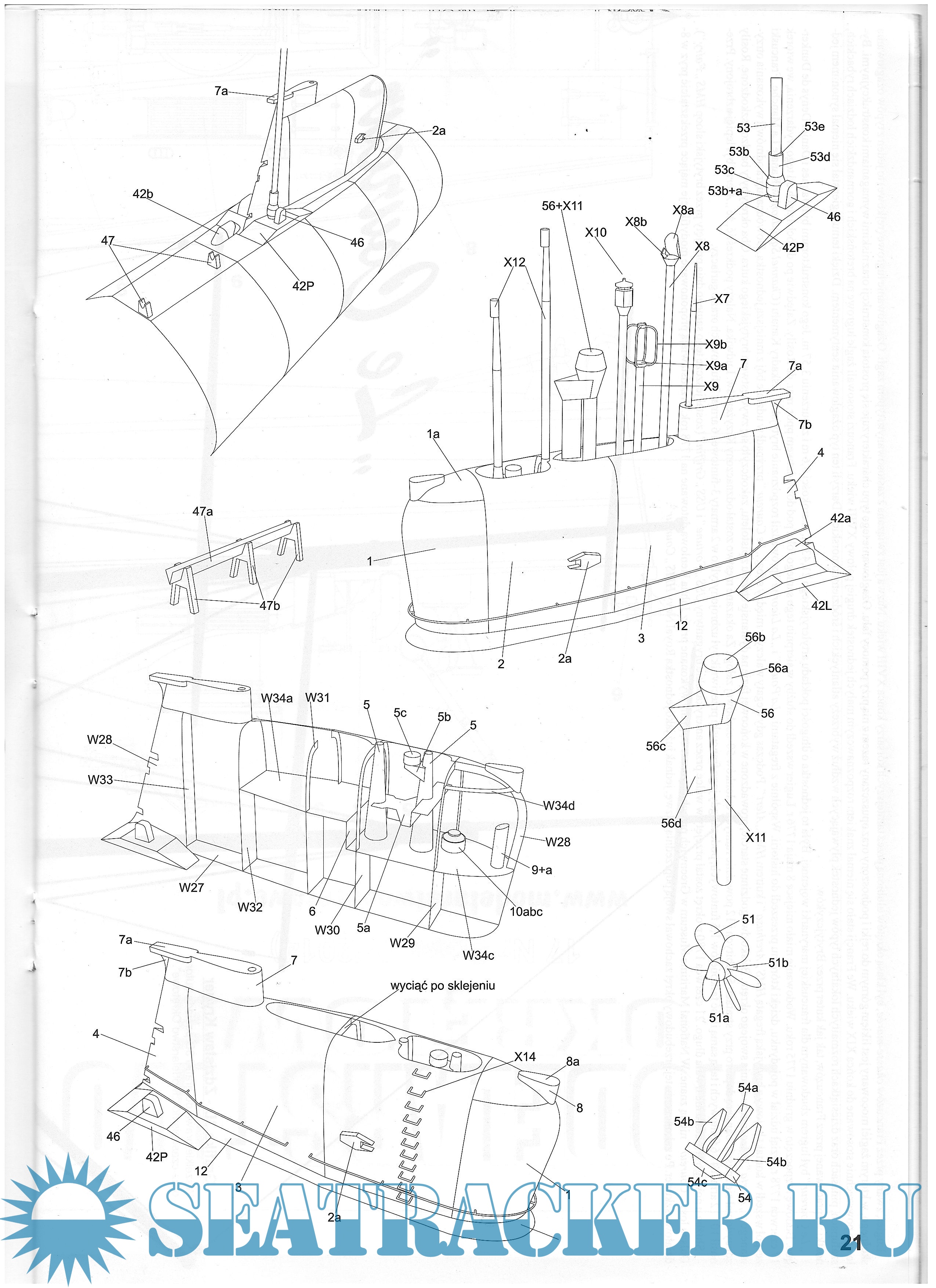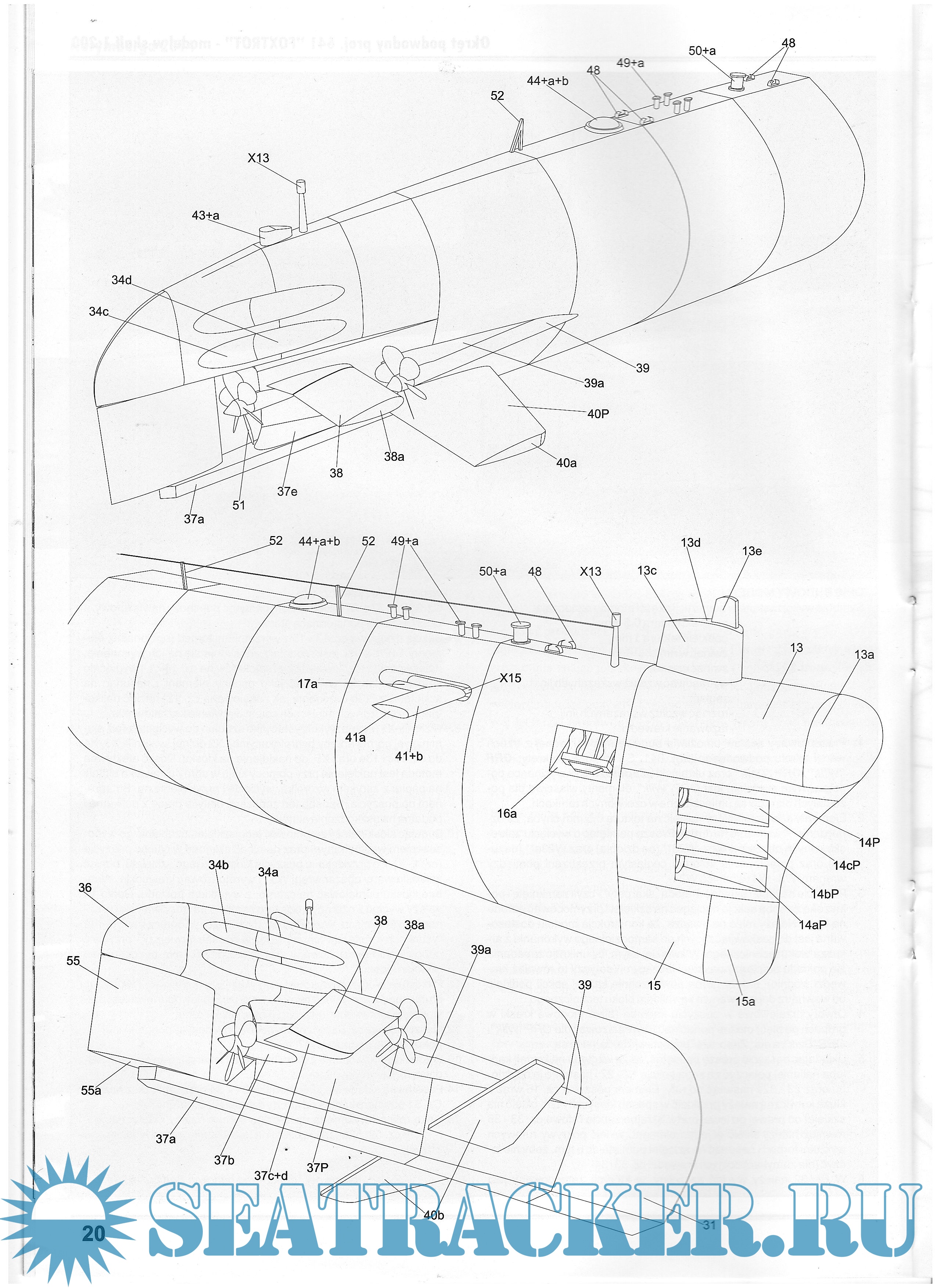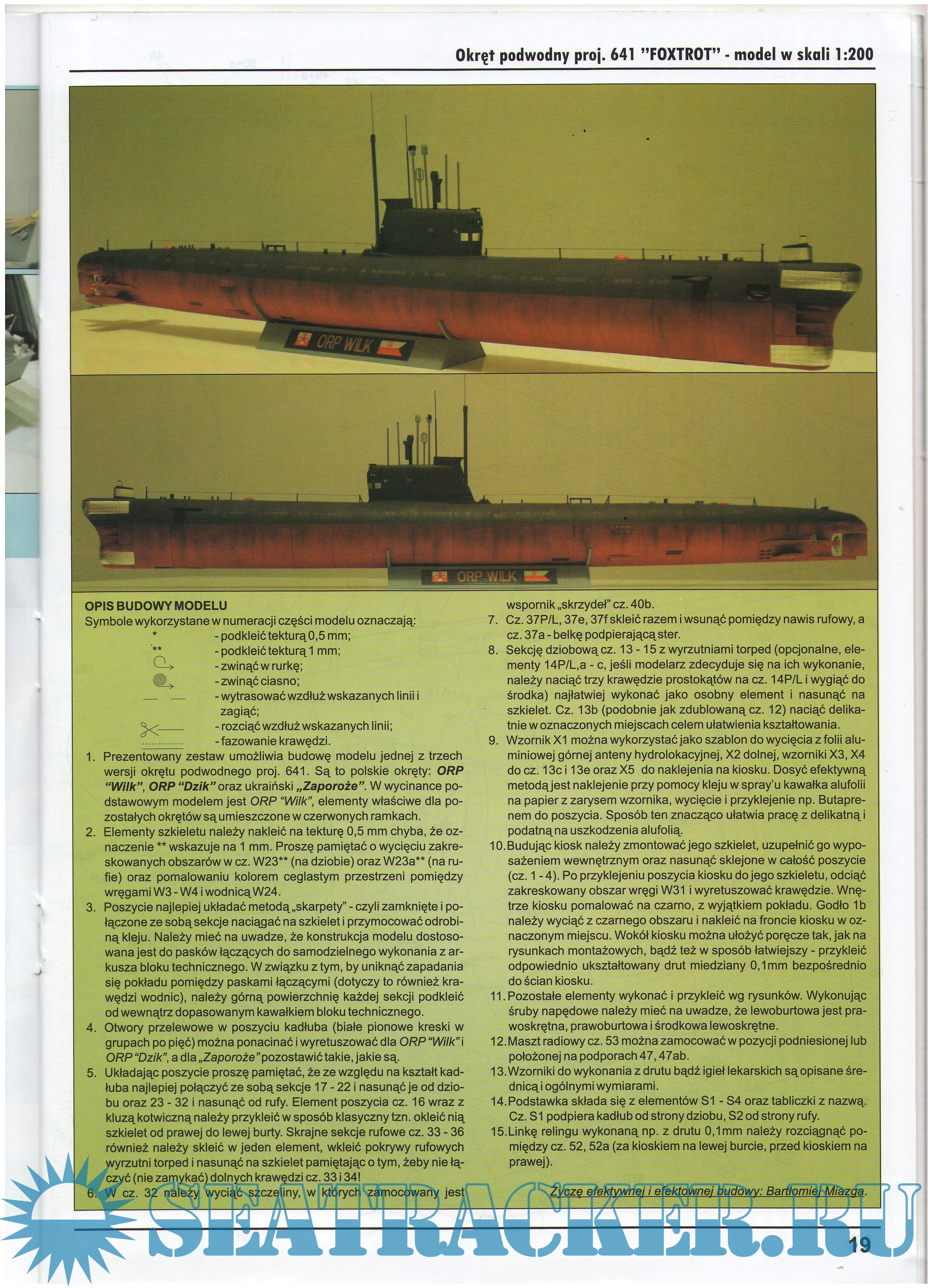 19 листов цветных выкроек и описаний для изготовления бумажной модели подводной лодки проекта 641 Foxtrot