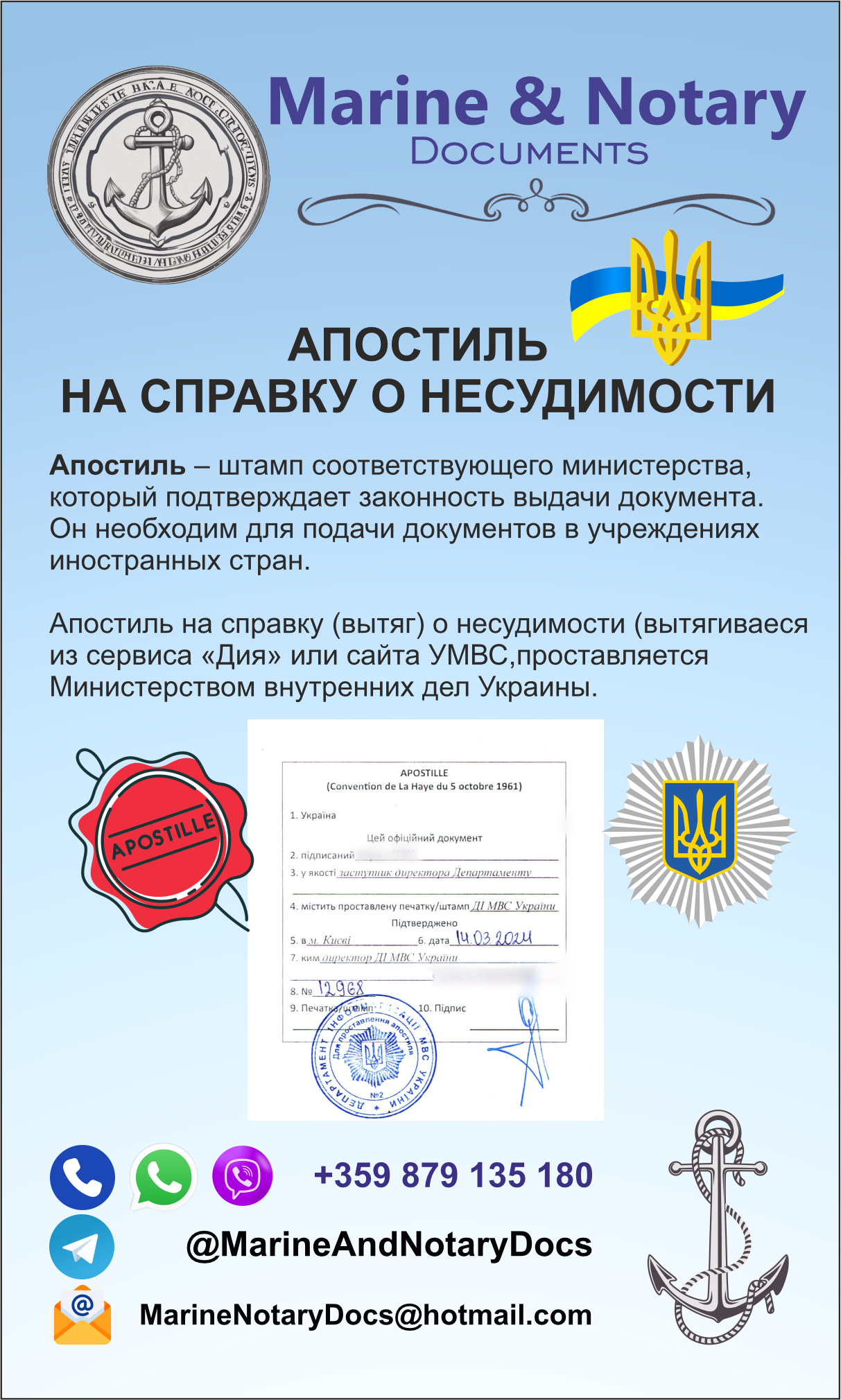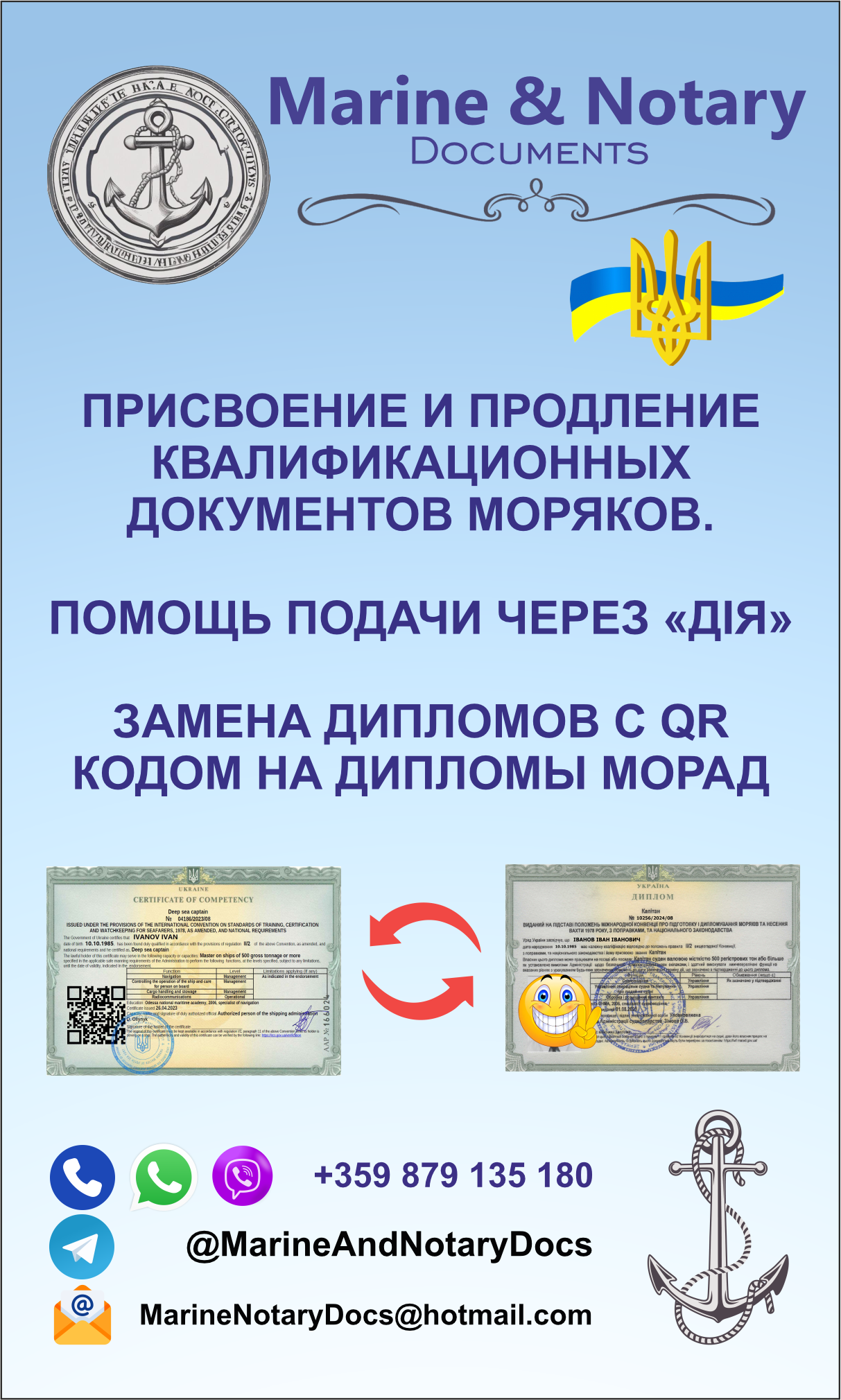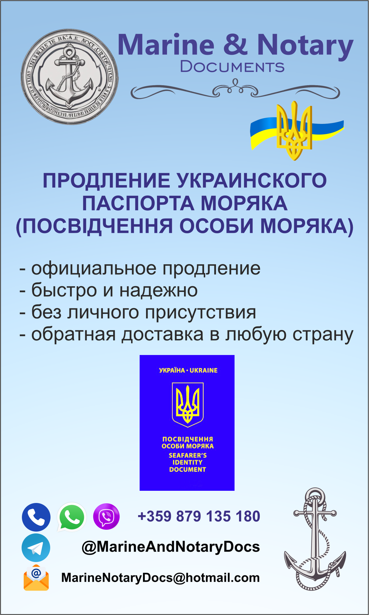 Помощь украинским морякам в получении морских документов и нотариальные услуги