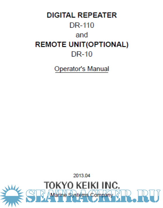 Description: This Operator's manual describes precautions, operations and troubleshooting of Digital Gyro repeater DR 110 & Remote unit DR 10