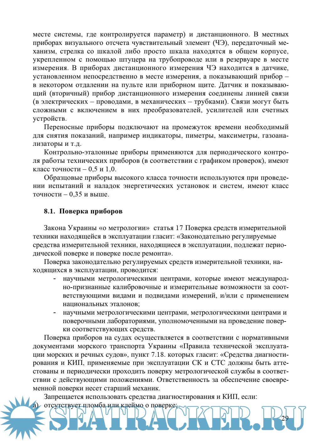 Описание: В учебном пособии описаны конструкции и принцип действия наиболее распространенных приборов, которые должен знать инженер-судомеханик, чтобы его профессионализм отвечал требованиям Правила III/1 Международной конвенции о подготовки и дипломирования моряков и несения вахты (Кодекса ПДНВ 78/95 (таблица А-III/1) с поправками 2010г.) на уровне эксплуатации.