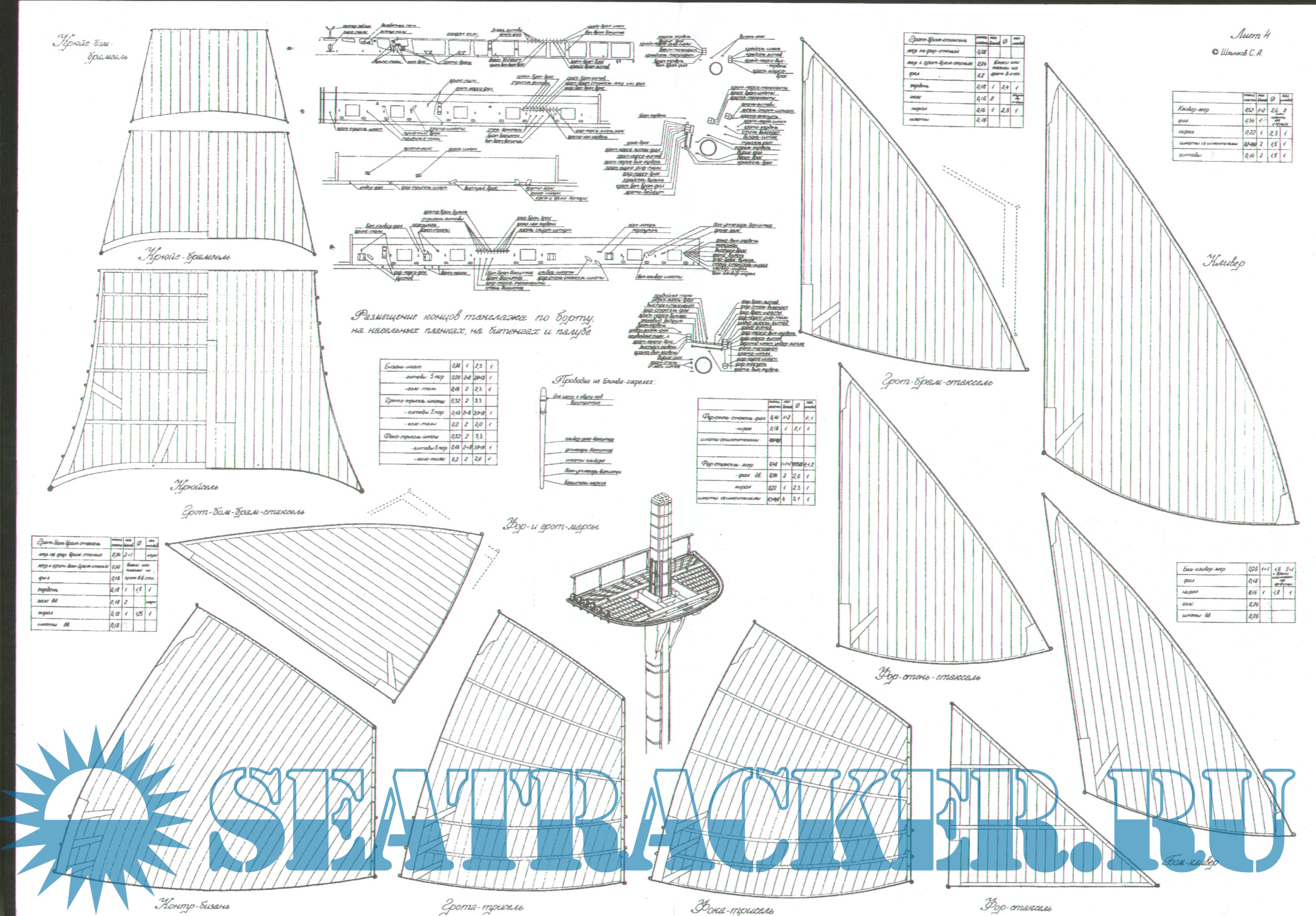 6 листов чертежей 120-пушечного русского линейного парусного корабля "Париж" 1849 год в масштабе 1:200Скриншоты