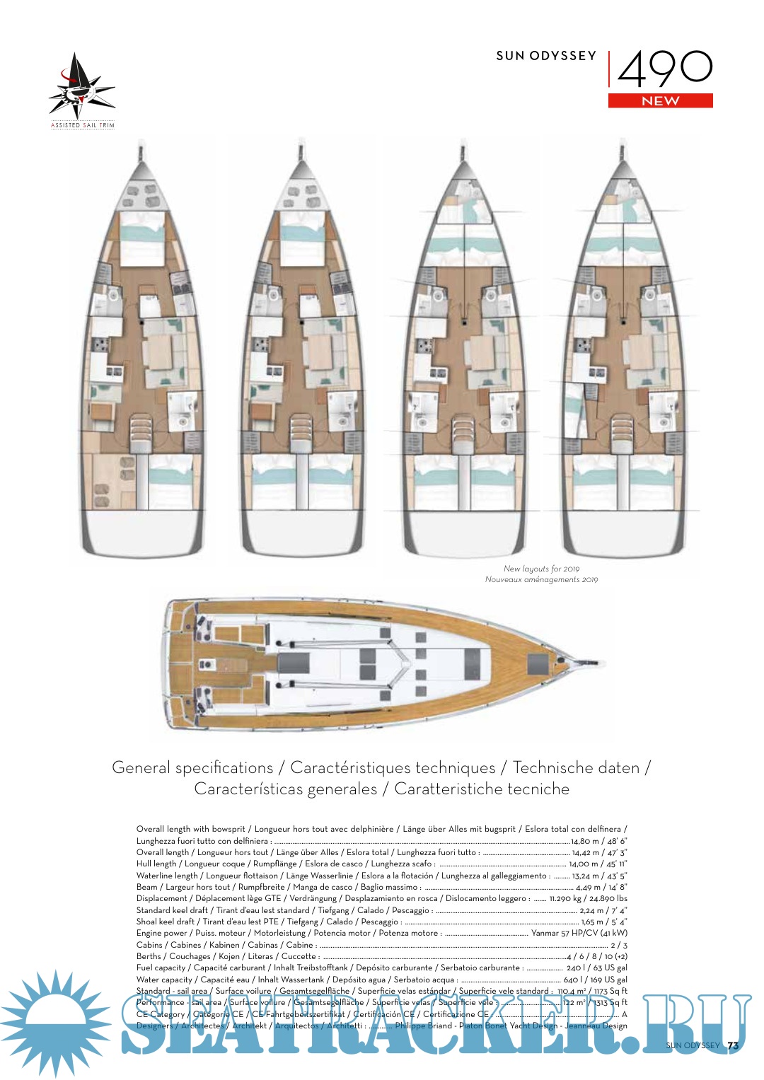 Year: 2019 Language: English, French, German, Spanish, Italian Author: Collective Genre: Catalog Format: PDF Quality: eBook Pages count: 96 Description: The Sun Odyssey range confirms the success of sailboats with true Jeanneau features : Elegance, inventiveness and security. Onboard the comfort is served by a timeless design, performance is achieved without effort, and above all, safety at sea is guaranteed. Ideal for your family cruises.