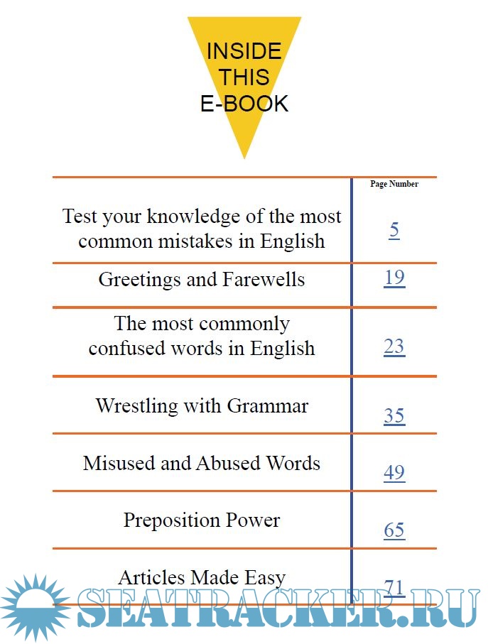 Year: 2xxx Language: english Author: Ted Tucker Publisher: Brain House Format: PDF Quality: eBook Pages count: 81 Description: A resource for correcting the most common errors in English. Includes a diagnostic test and easy instructions for fast improvements.