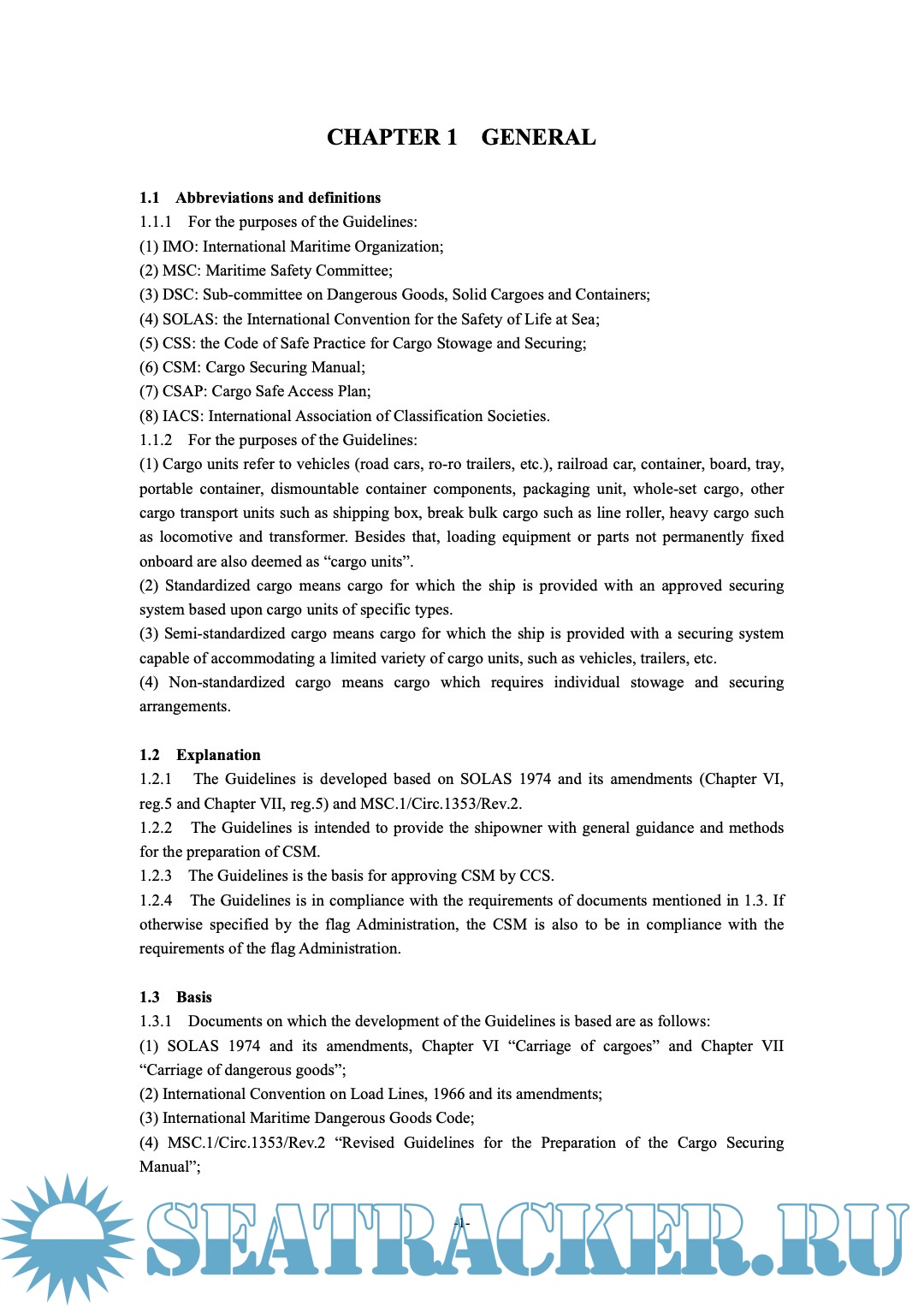 Description: The Guidelines is developed based on SOLAS 1974 and its amendments (Chapter VI, reg.5 and Chapter VII, reg.5) and MSC.1/Circ.1353/Rev.2.