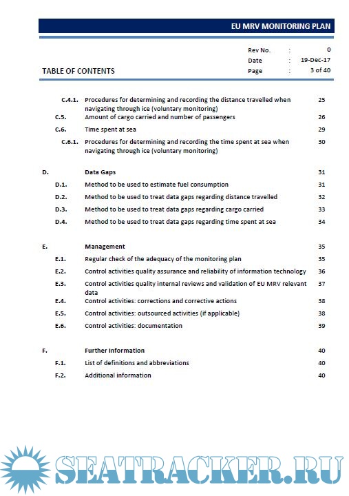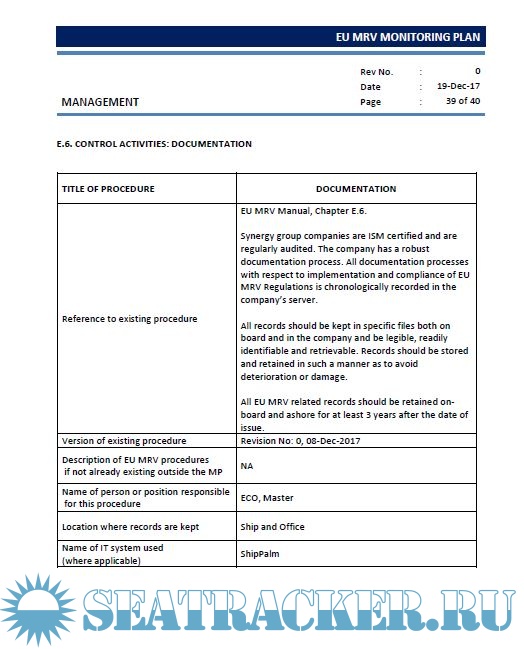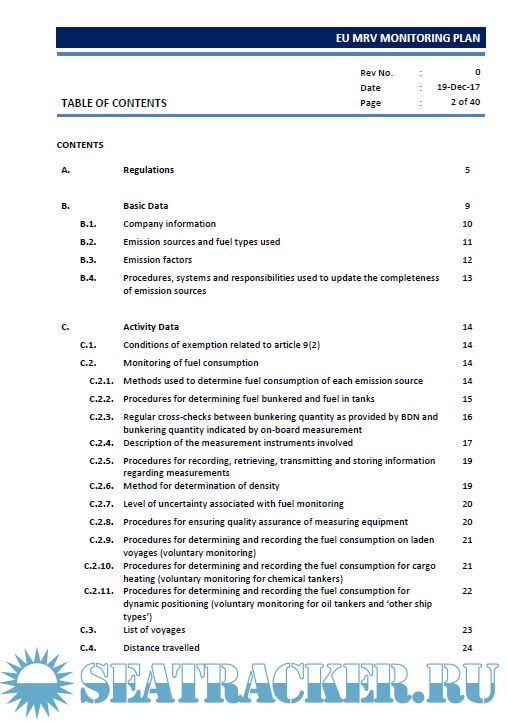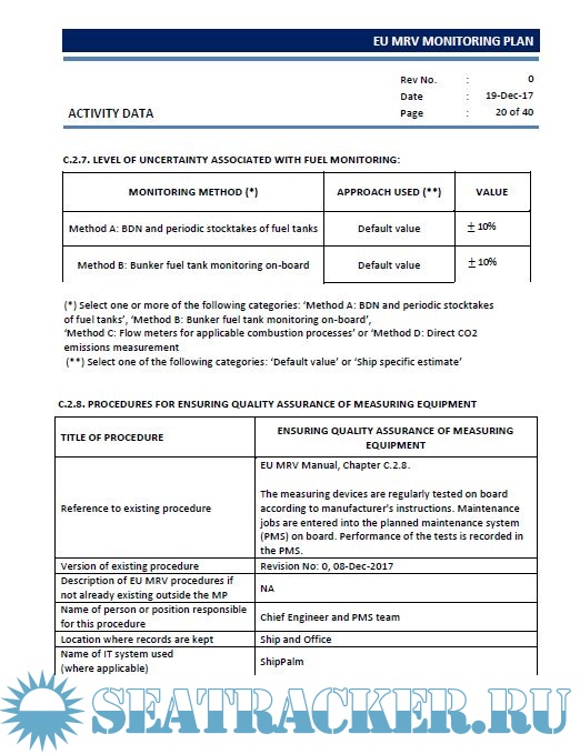 Description: European Union Monitoring, Reporting and Verification (EU MRV) Monitoring Plan