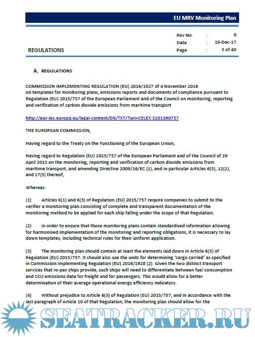 European Union Monitoring, Reporting and Verification (EU MRV) Monitoring Plan