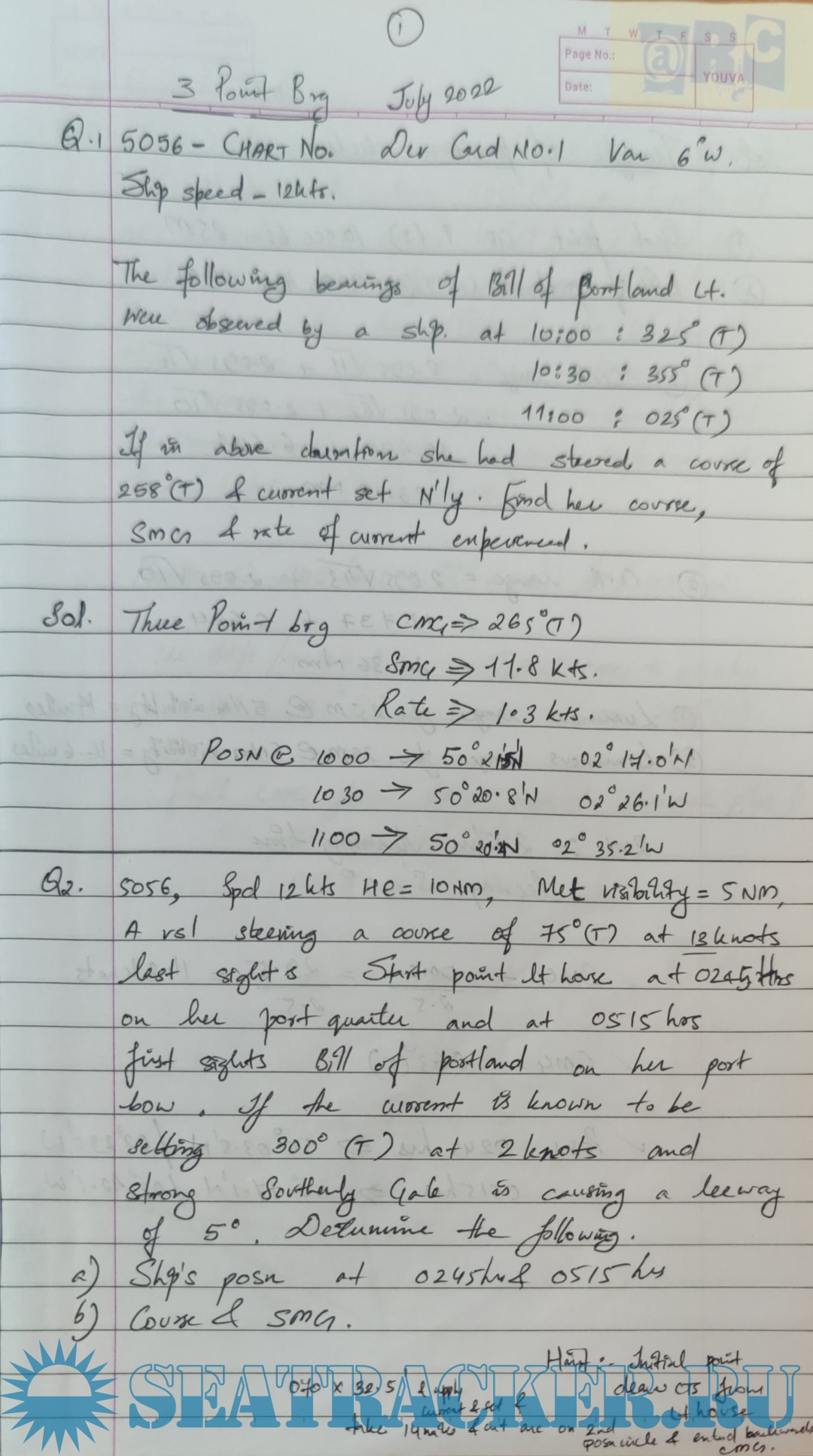 Solutions for TCN Chart Work Numerical for Mercantile Marine Department (MMD), India Examinations.