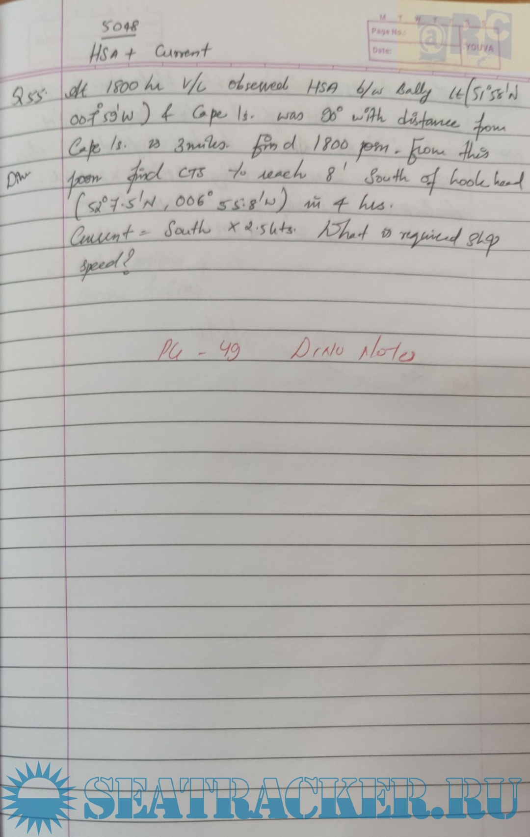 Solutions for TCN Chart Work Numericals for Mercantile Marine Department (MMD), India Examinations for Phase I (Chief Mate F.G.)