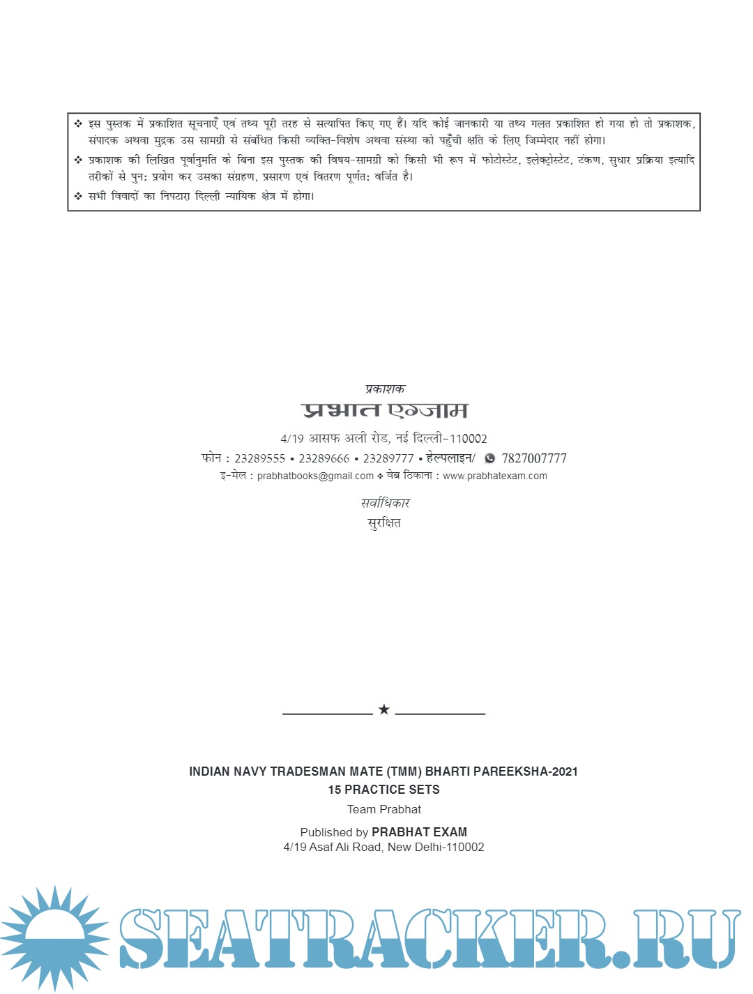 Description: Prepare for the Indian Navy Tradesman Mate (TMM) Bharti Pareeksha-2021 with '15 Practice Sets (Revised 2021) by Team Prabhat.