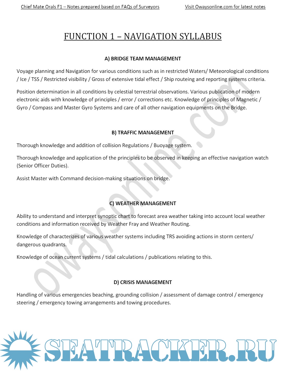 Chief Mate F.G. MMD, India Orals Exams Notes Based on Frequently Asked Questions: Function 2 - Oways Online [2024, PDF]