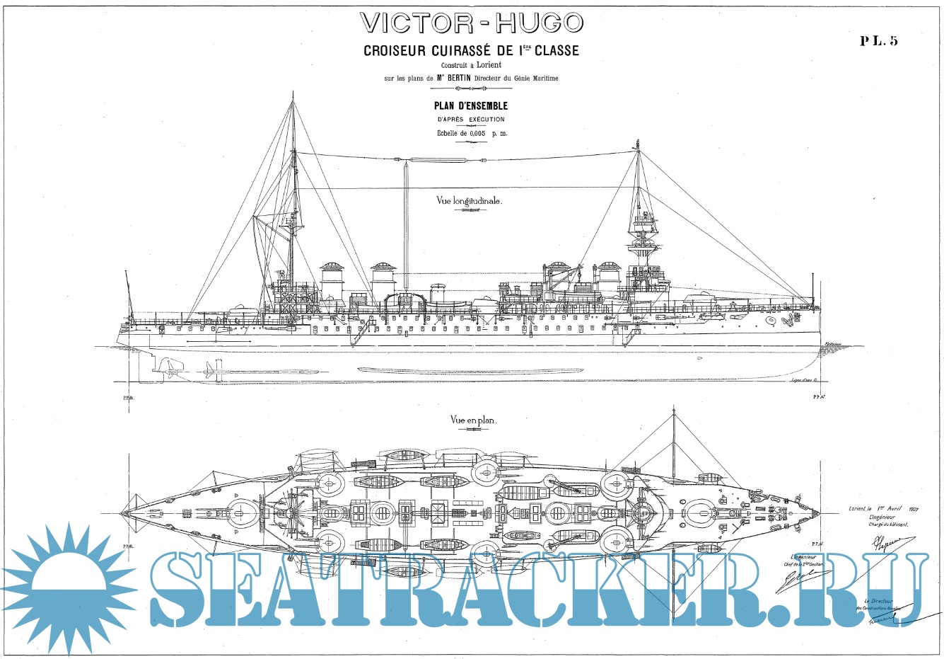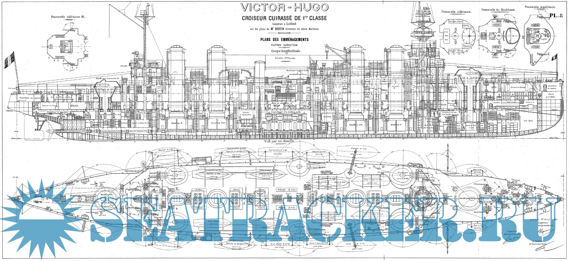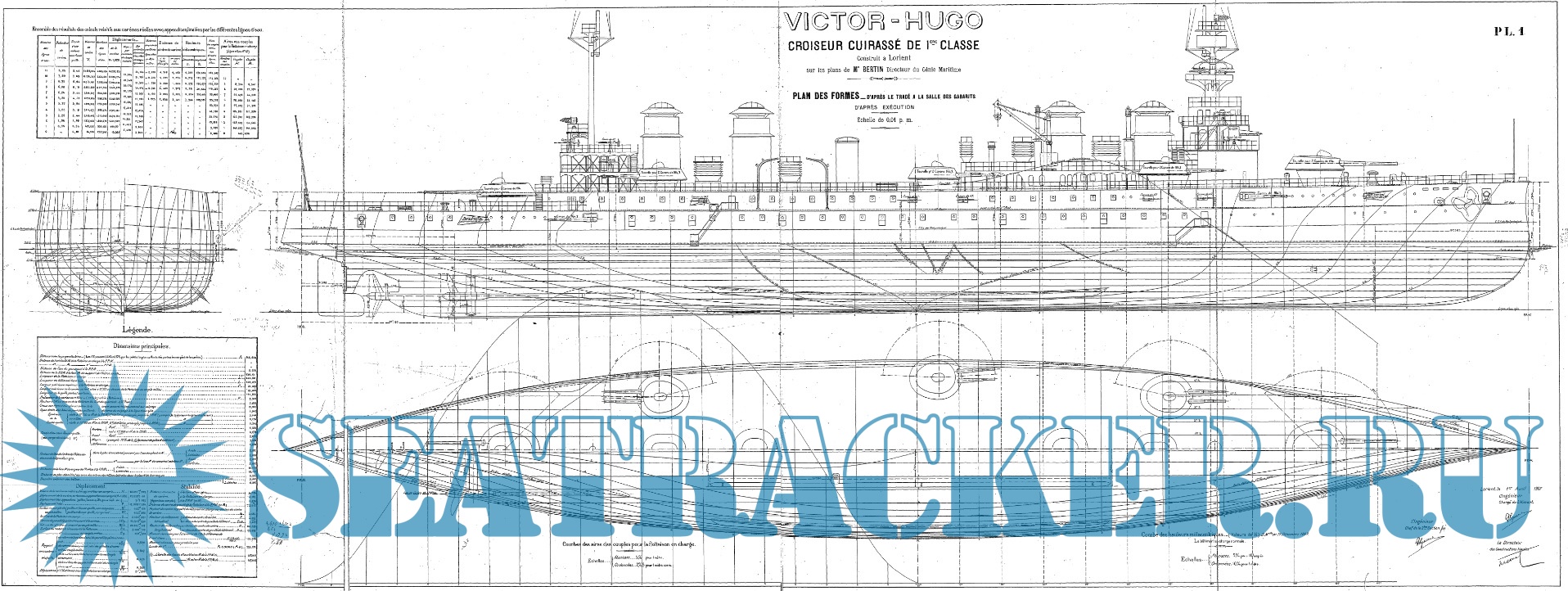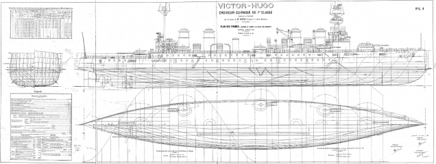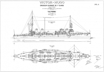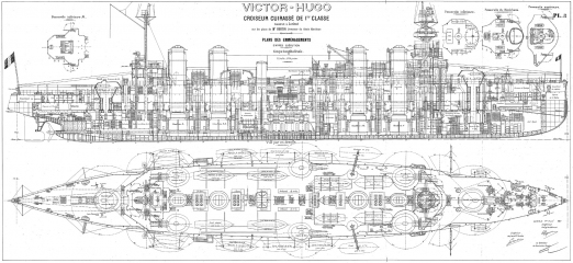 Архивные чертежи французского крейсера 1-го ранга "VICTOR HUGO" 1904 год