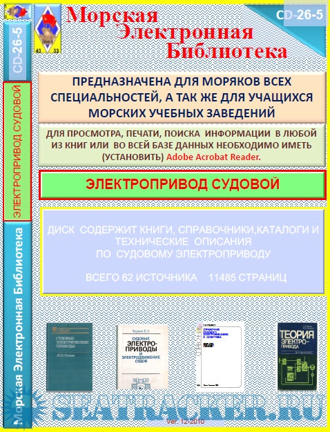 Диск содержит книги, справочники,каталоги и технические описания по судовому электроприводу. Всего 62 источника 11485 страниц
