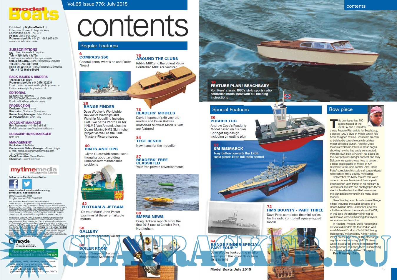 Description: Model Boats magazine is a practical and informative read for those with a love for the hobby. It covers the latest news and views from the various clubs and associations around the country, useful hints, tips and step by step guides for those interested in the art of constructing a model boat as well as tests and recommendations of new boats and tools. Floating along behind these are great special features examining in depth different models from narrowboat to destroyer!