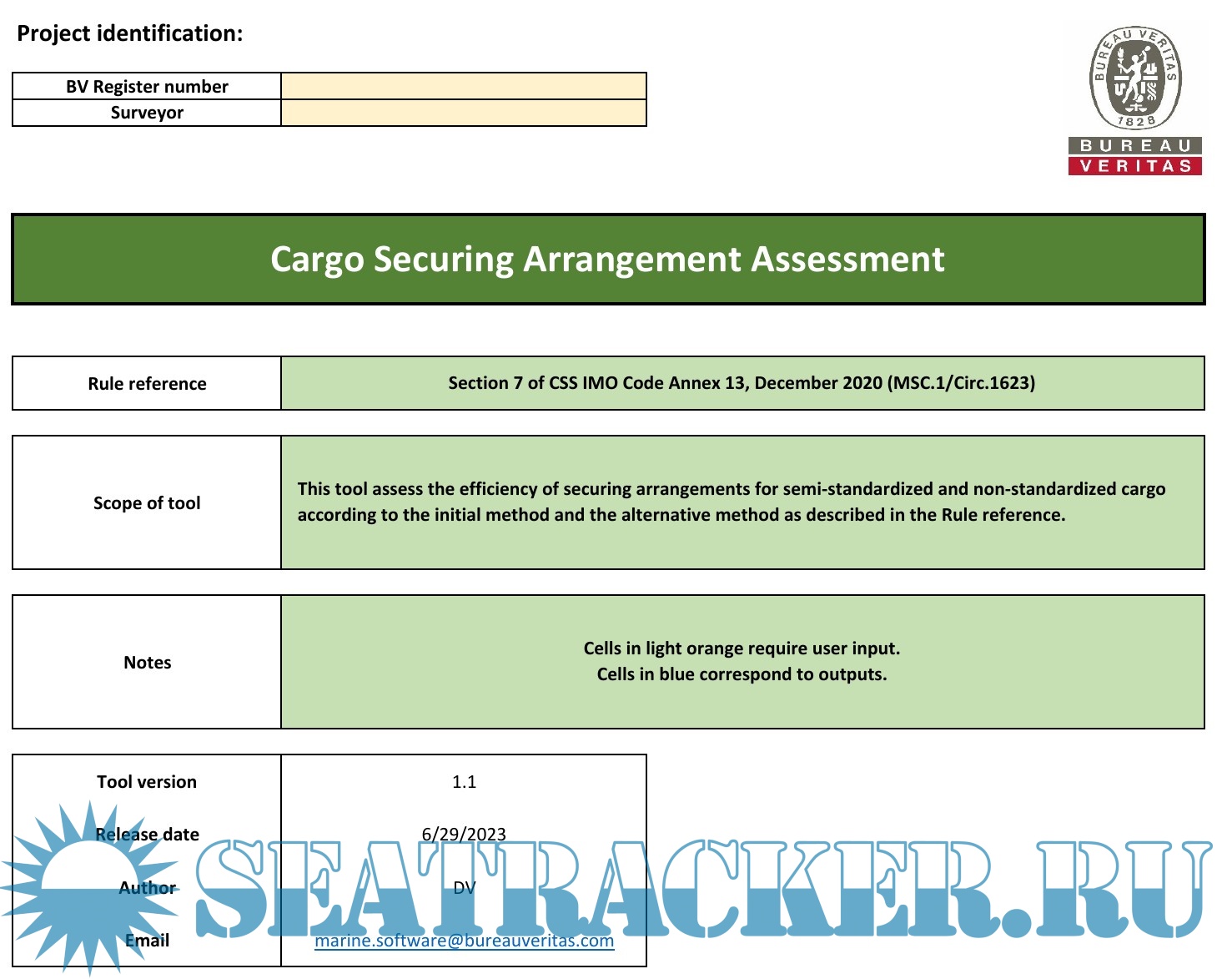 Cargo securing arrangement assessment (EXCEL)