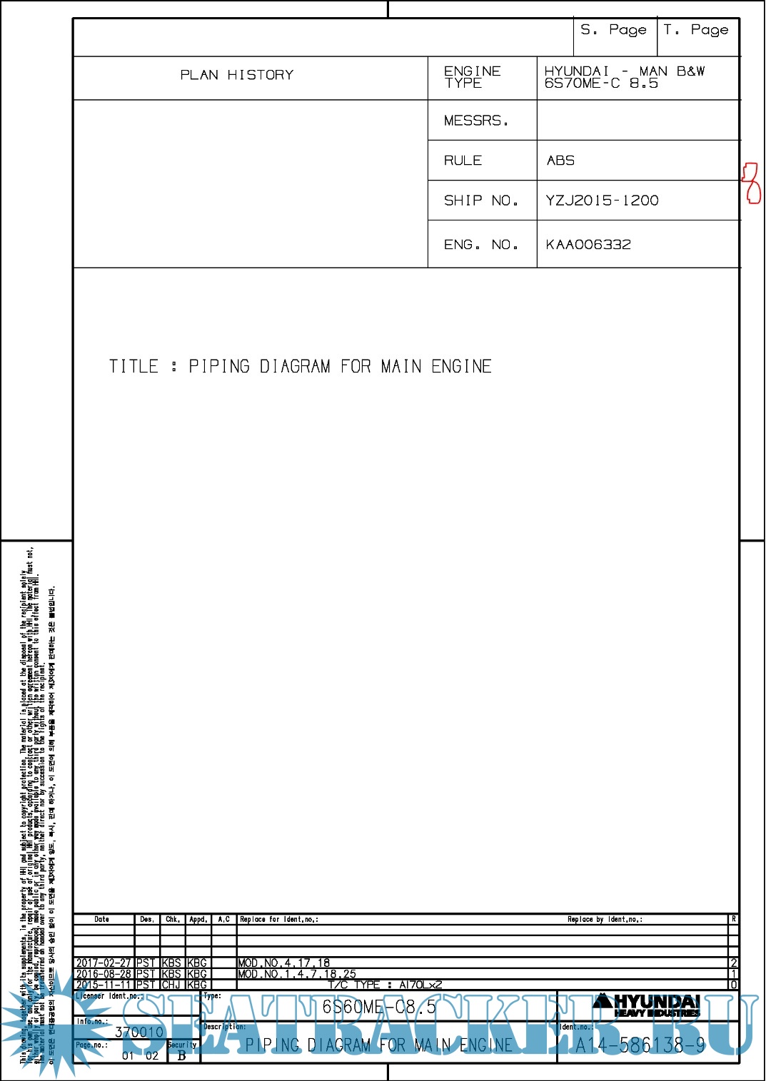 Description: Final drawings for Main Engine Hundai MAN B&W 6S70ME-C8.5.